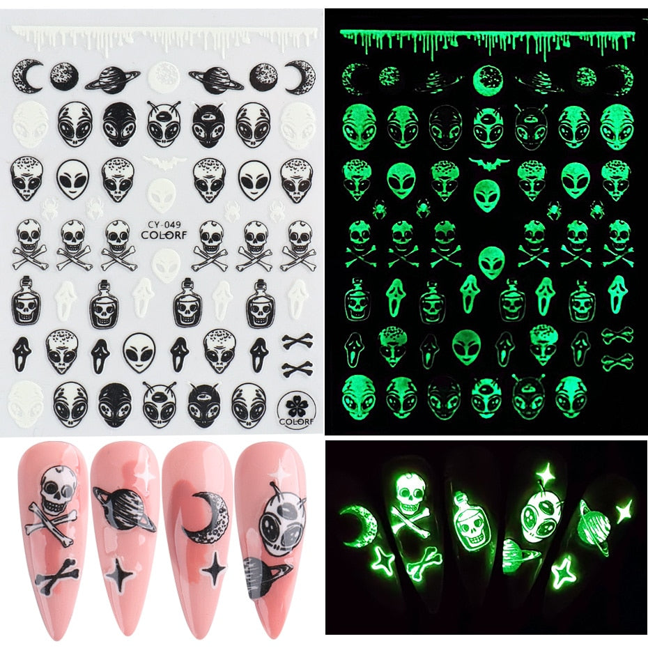 Item Condition: New Arrivals Luminous Glowing in the Dark luxury Snake Dragon Halloween Nail art stickers decals Decoration Gril