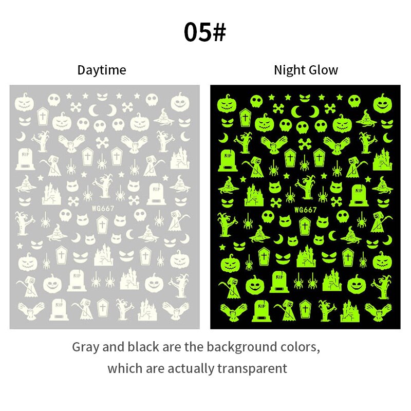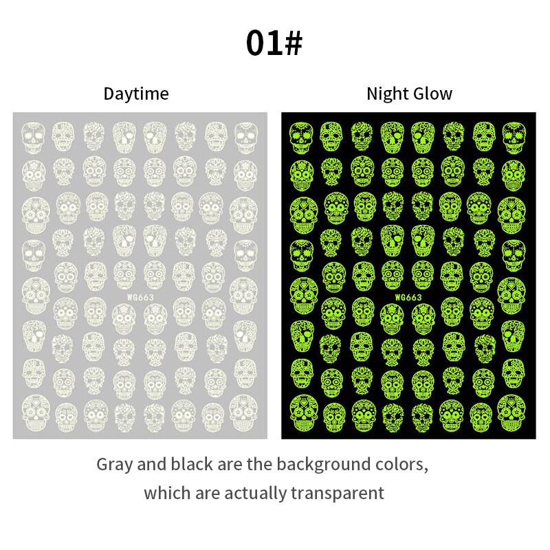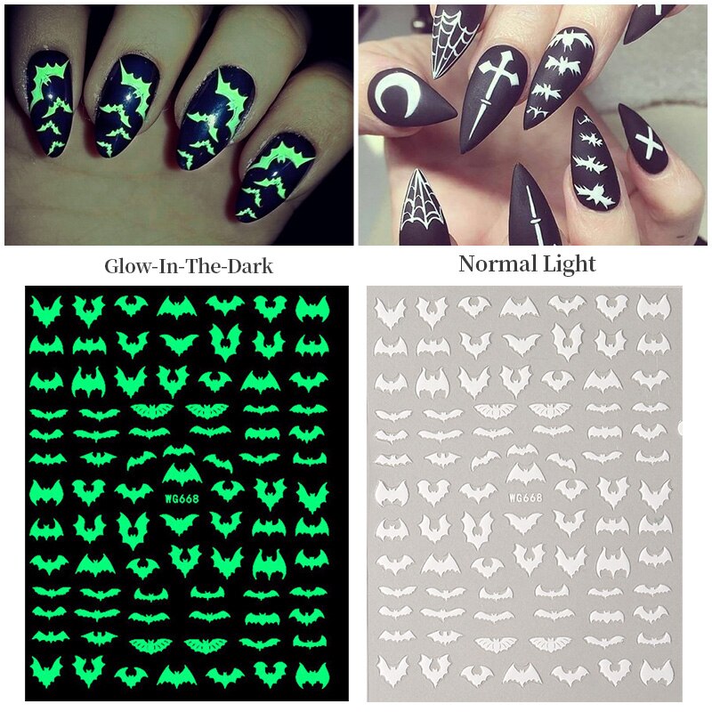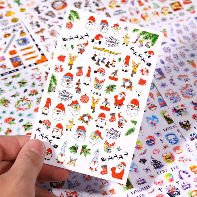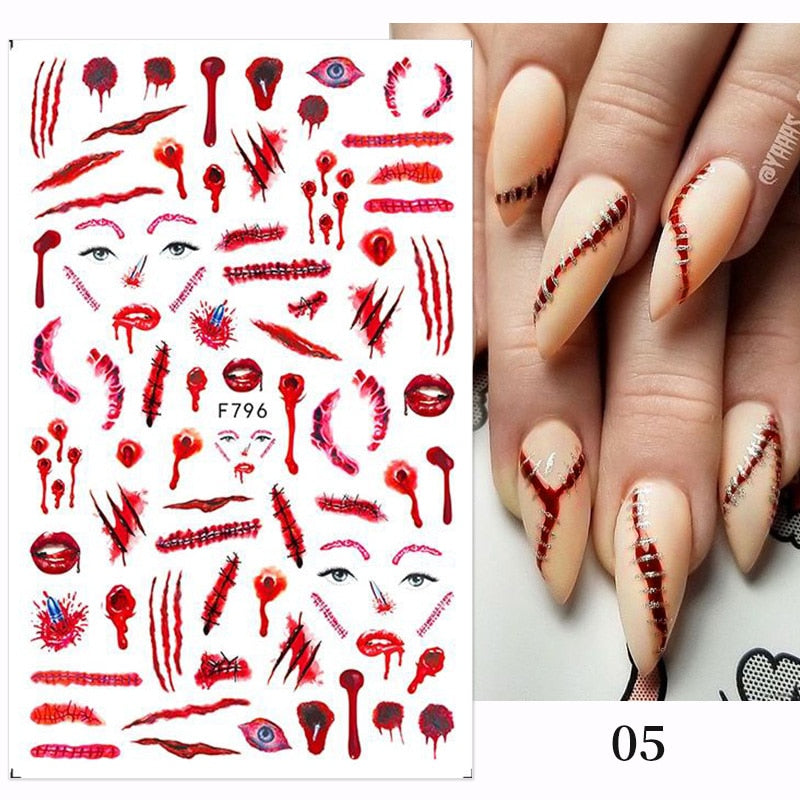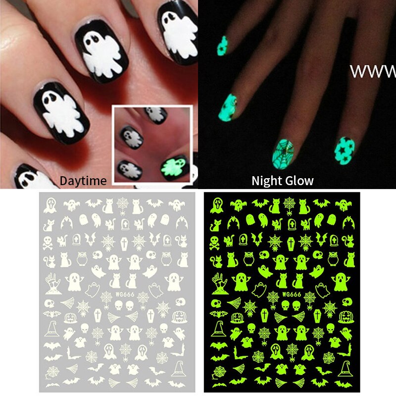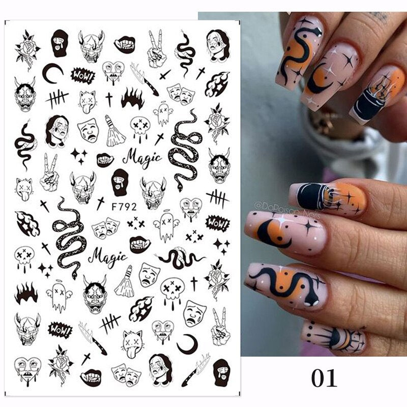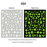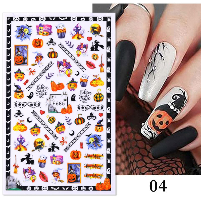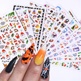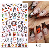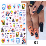 Yeknu 3D Halloween Nail Stickers Skull Bone Pumpkin Adhesive Sliders Cute Cartoon Design Fall Winter Festival Nail Art Accessories