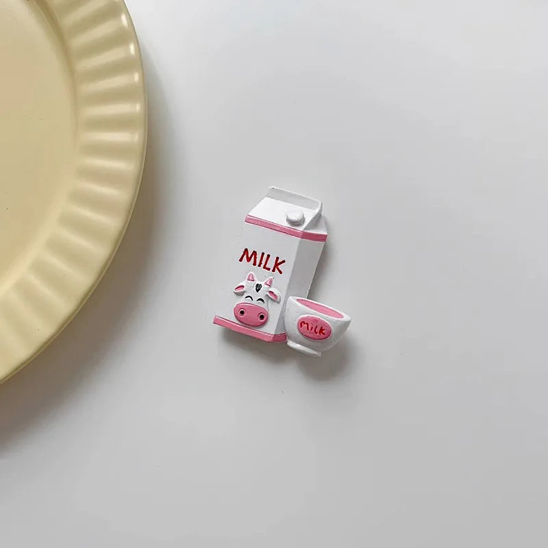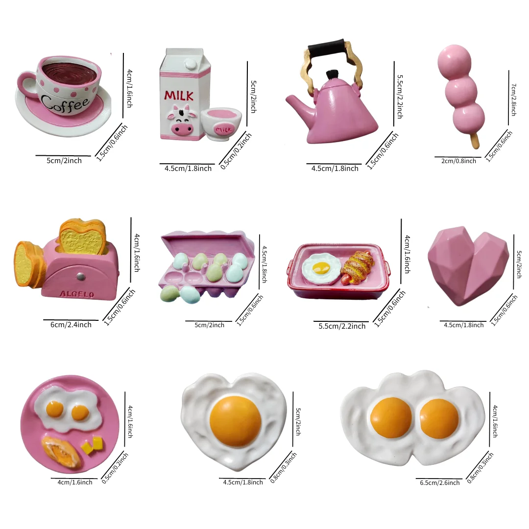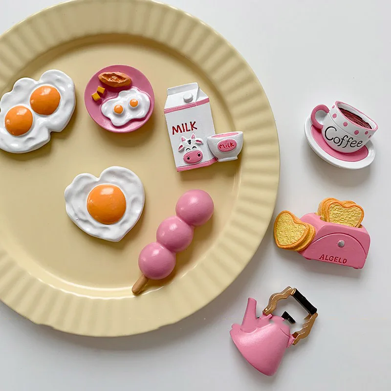 Yeknu 3D Simulation Food Style Fridge Magnets Pink Heart Egg Croissant Magnetic Decoration Stickers For Refrigerator