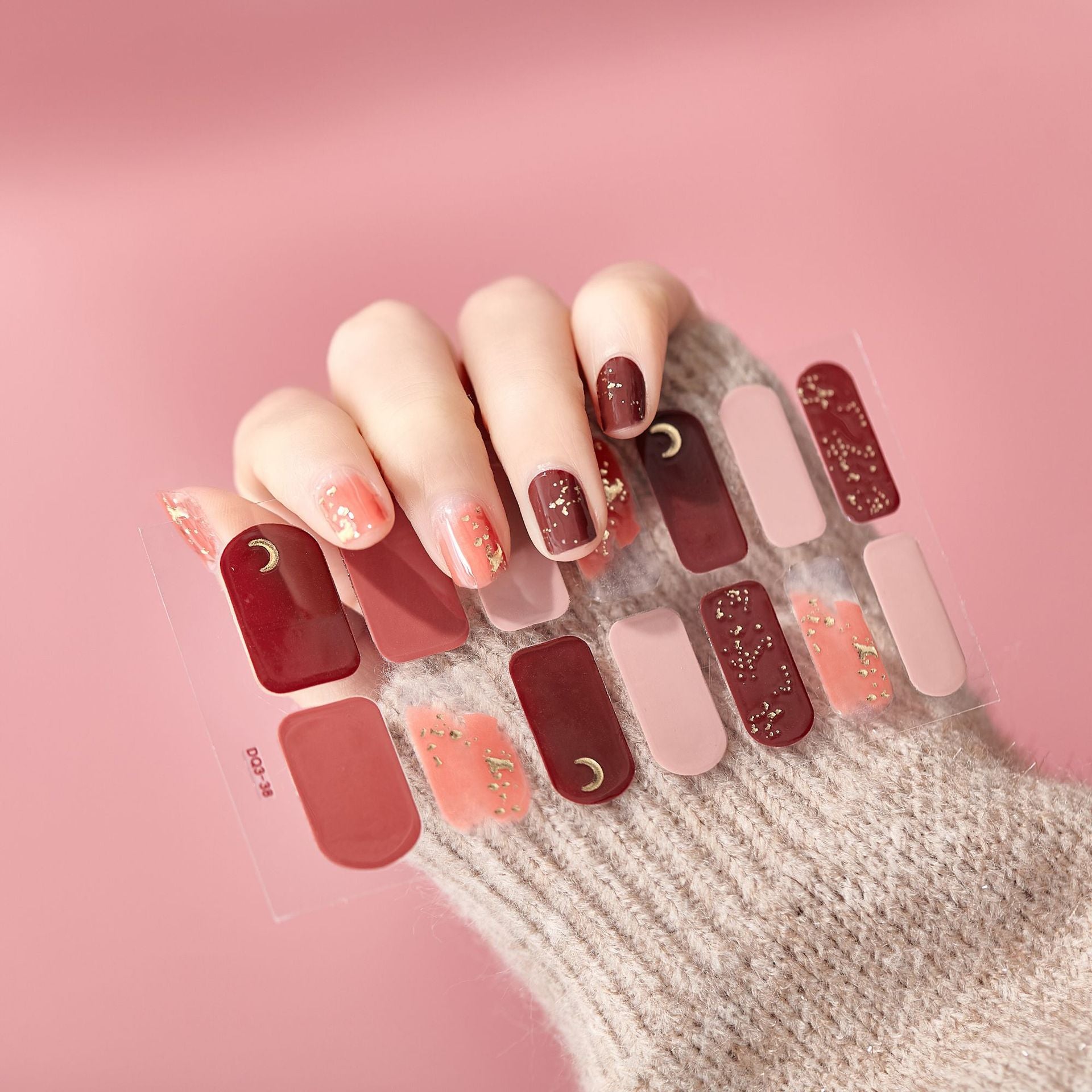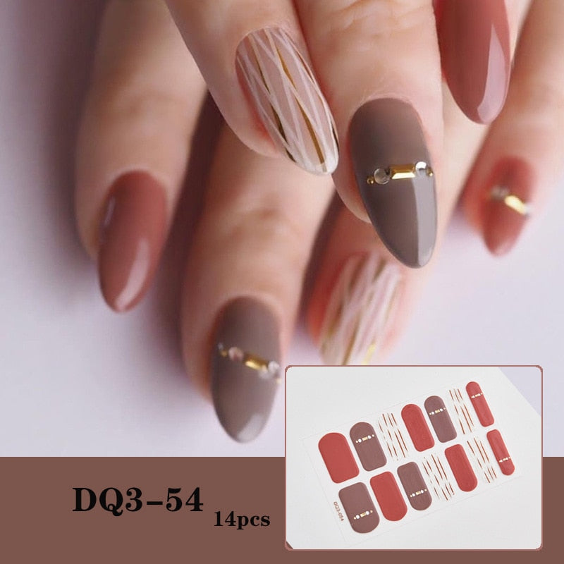 Yeknu 3pcs 22 Tips Nail Sticker Solid Color And Striped Manicure Creative Salon Nail Wraps DIY Nail Stickers Set Sticker For Nails Art