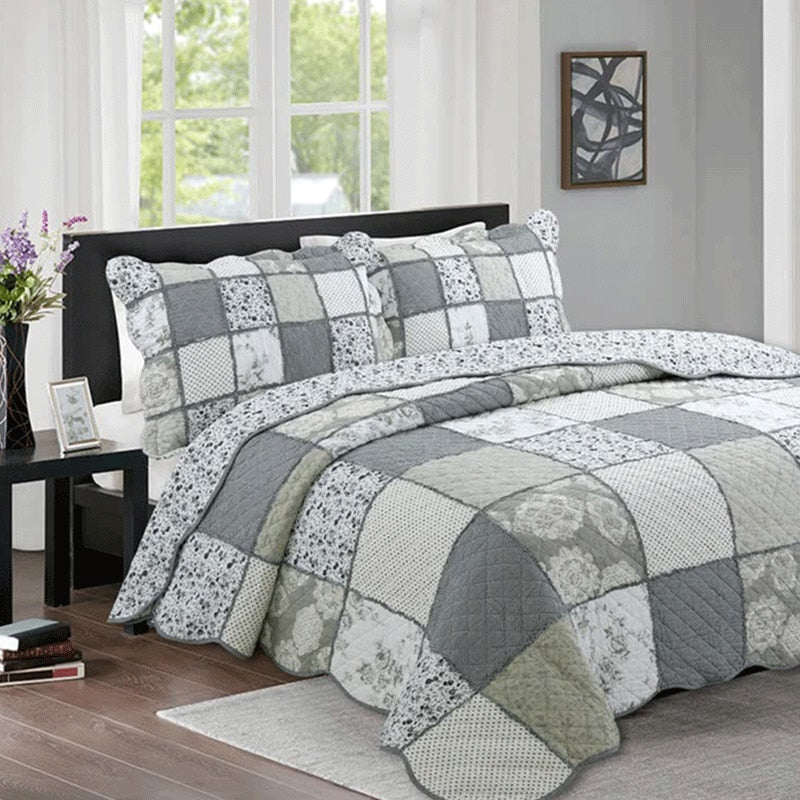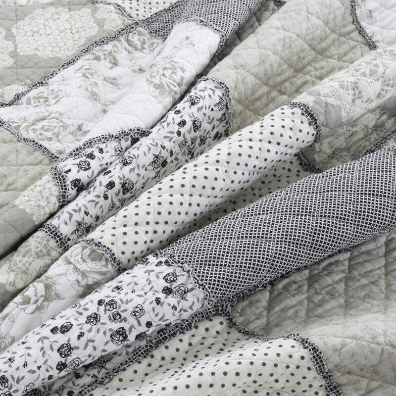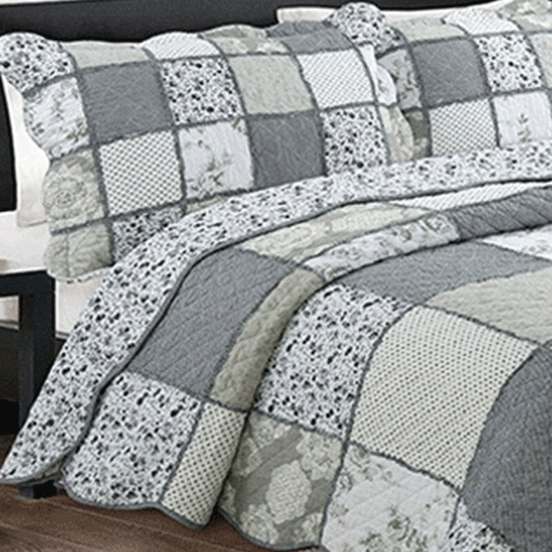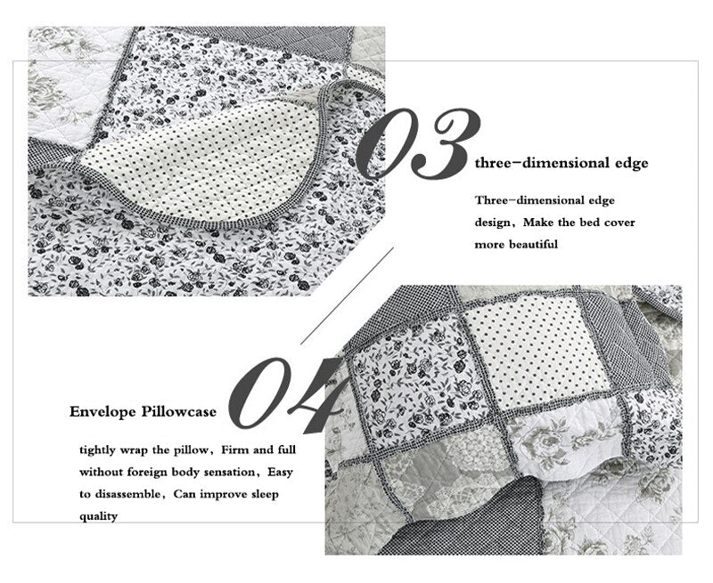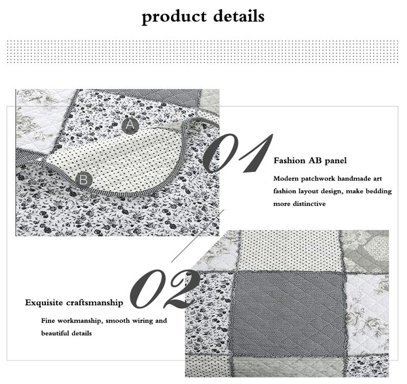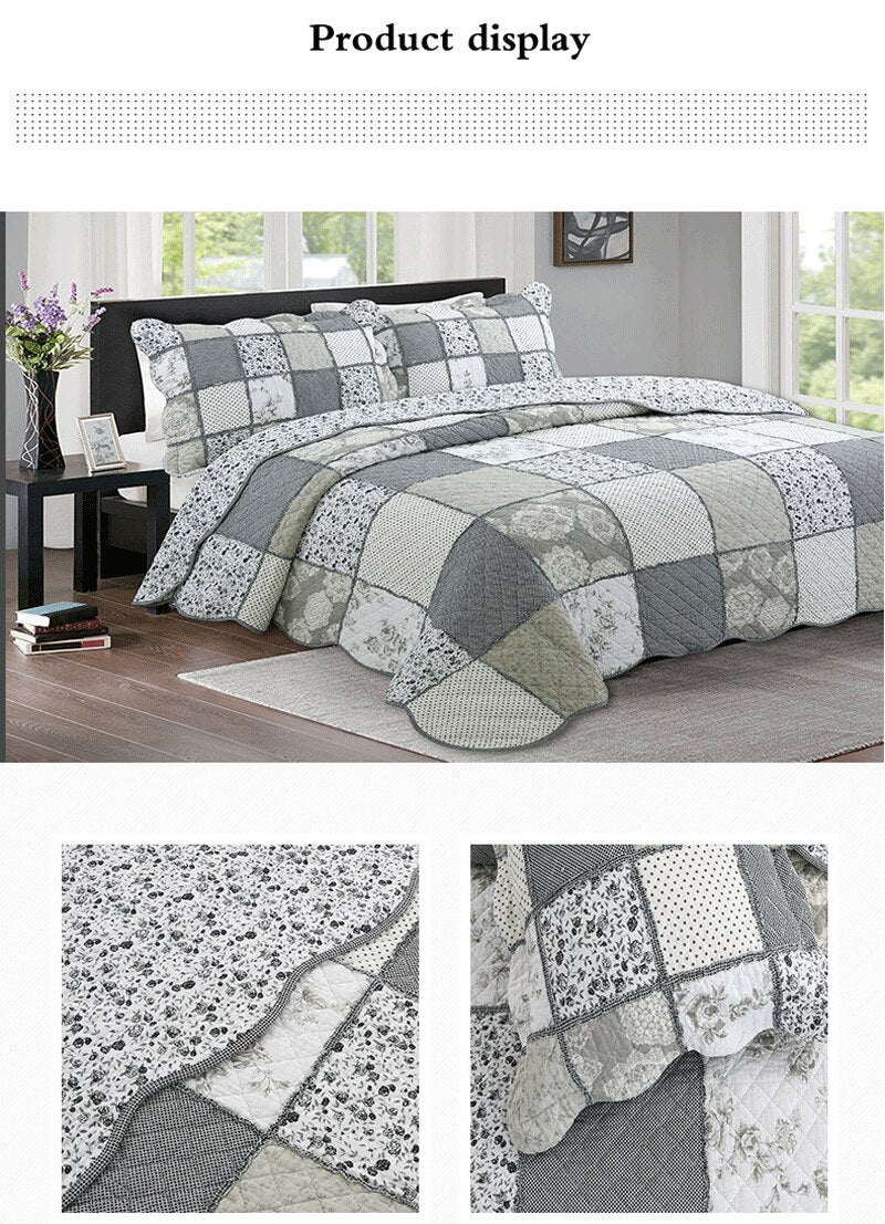 Yeknu 3pcs Acolchoado Splicing Grey Flowers 100% Cotton Bedspread 3 Luz Colcha Macia Frete