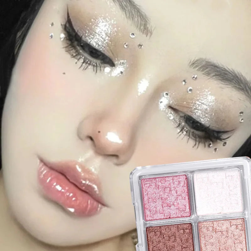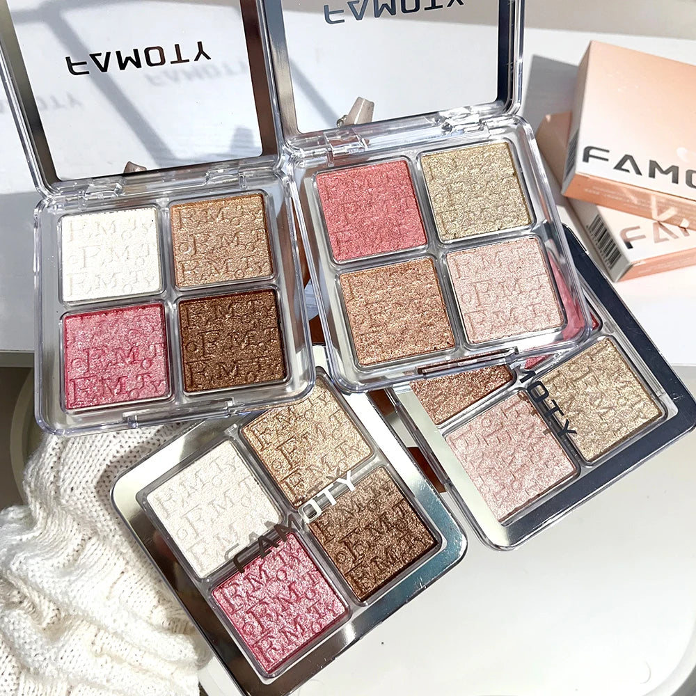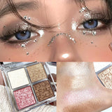 Yeknu 4 Colors Diamond Shimmer Highlighter Powder Palette Makeup Glow Face Contour Palette Illuminator Highlight Eyeshadow Cosmetics