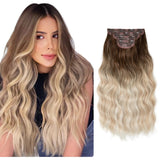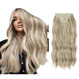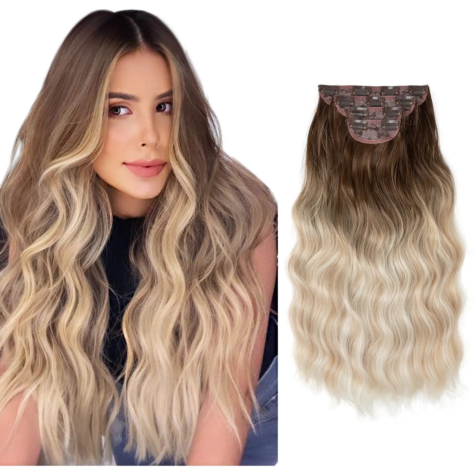Yeknu - 4pcs/set Synthetic Long Wavy Clip In Hair Extensions 22" Thick Hairpiece For Women Brown Blonde Black Natural Fake Hair