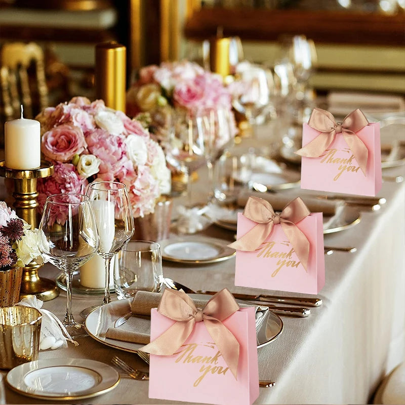 Yeknu 5/10pcs Thank You Candy Box With Ribbon Small Gift Packing Bag For Christmas Wedding Baby Shower Birthday Party gift for guests