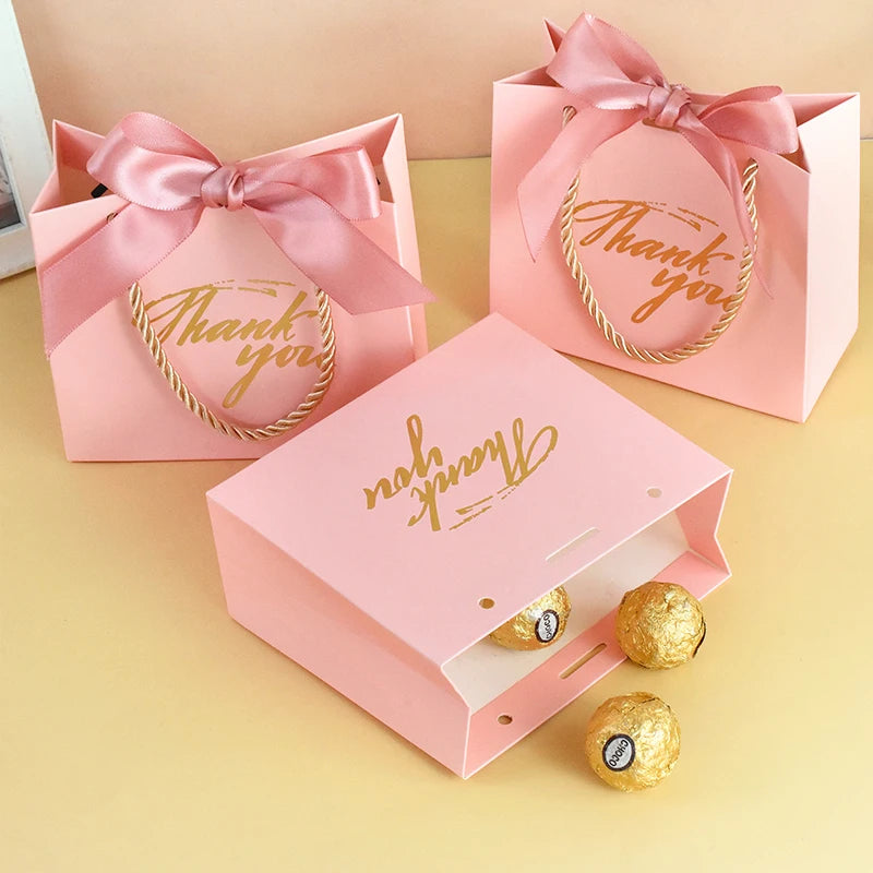 Yeknu 5/24pcs Thank You Paper Gift Box Wedding Favors for Guests Birthday Party Candy Cookie Packaging Bag Baby Shower Decor Supplies