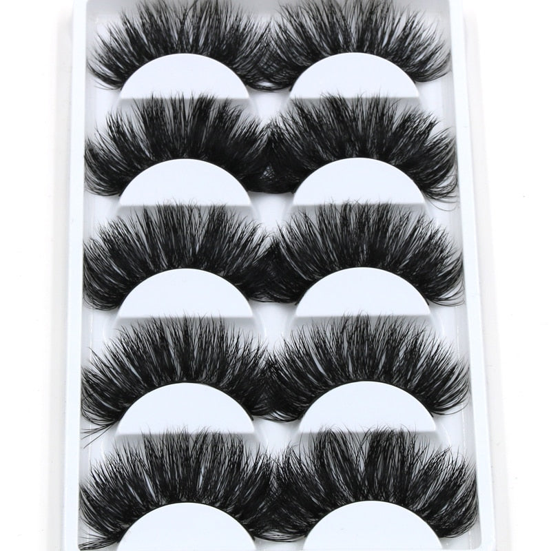 Yeknu 5 pairs Mink False Eyelashes Crisscross Messy Thick Exaggerated Long Fake Eyelashes Stage Romance Makeup Mink Eye Lashes