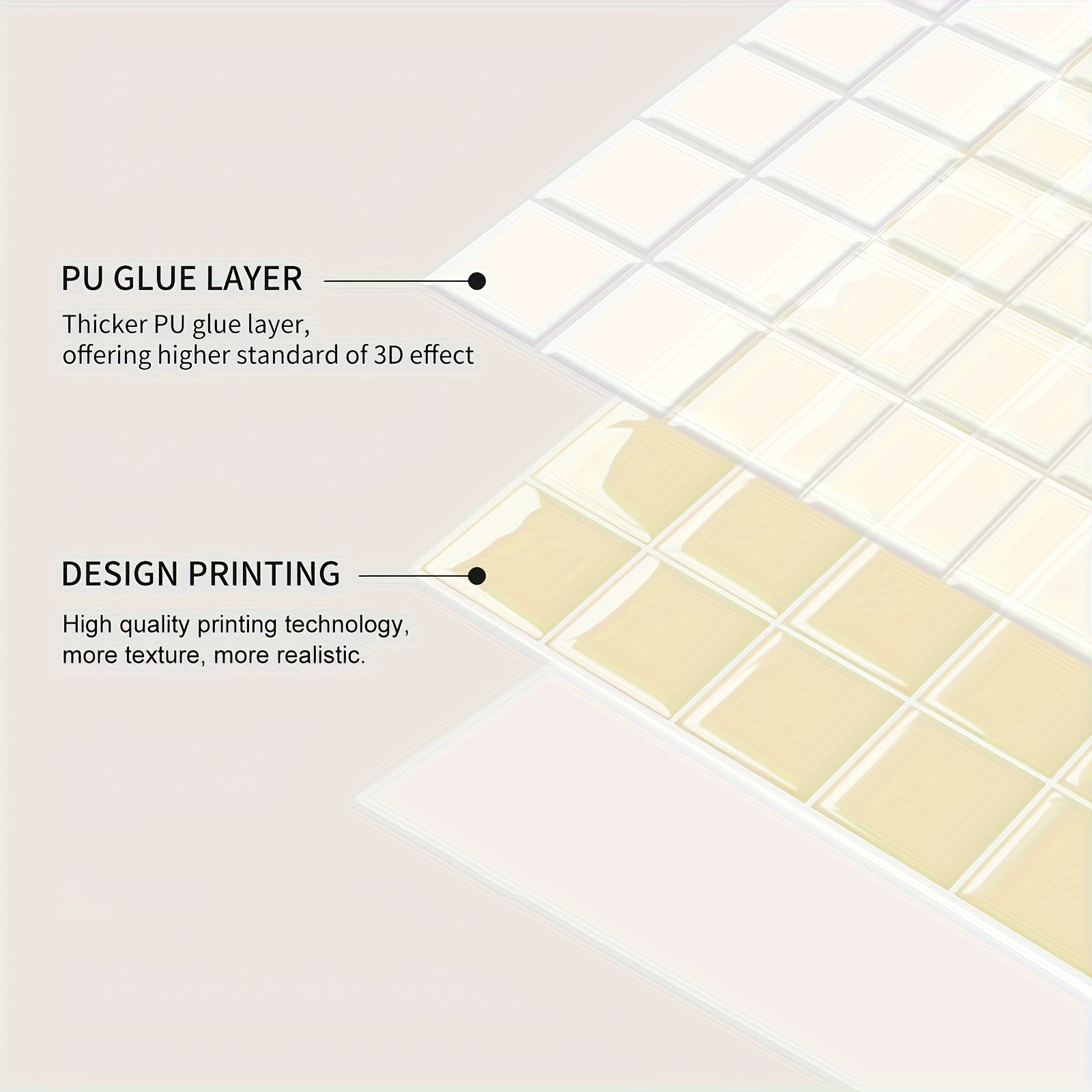 Yeknu 5pcs/10pcs3D Wall Tile Sticker 10x10in, Kitchen Living Room Bathroom Hallway, Easy to Apply and Peel off Sticker Wallpaper, Agate Jade Marble Square Grid Self-adhesive Waterproof Easy to Clean Free Cuttin