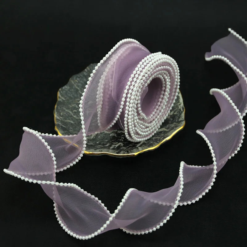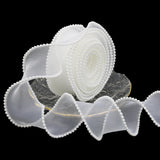 Yeknu (5yards/roll)4cm Pearl Edge Organza Ribbon Wave Silk Lace Children Hair Accessories Lolita Handmade Decorative Gift Box Wedding