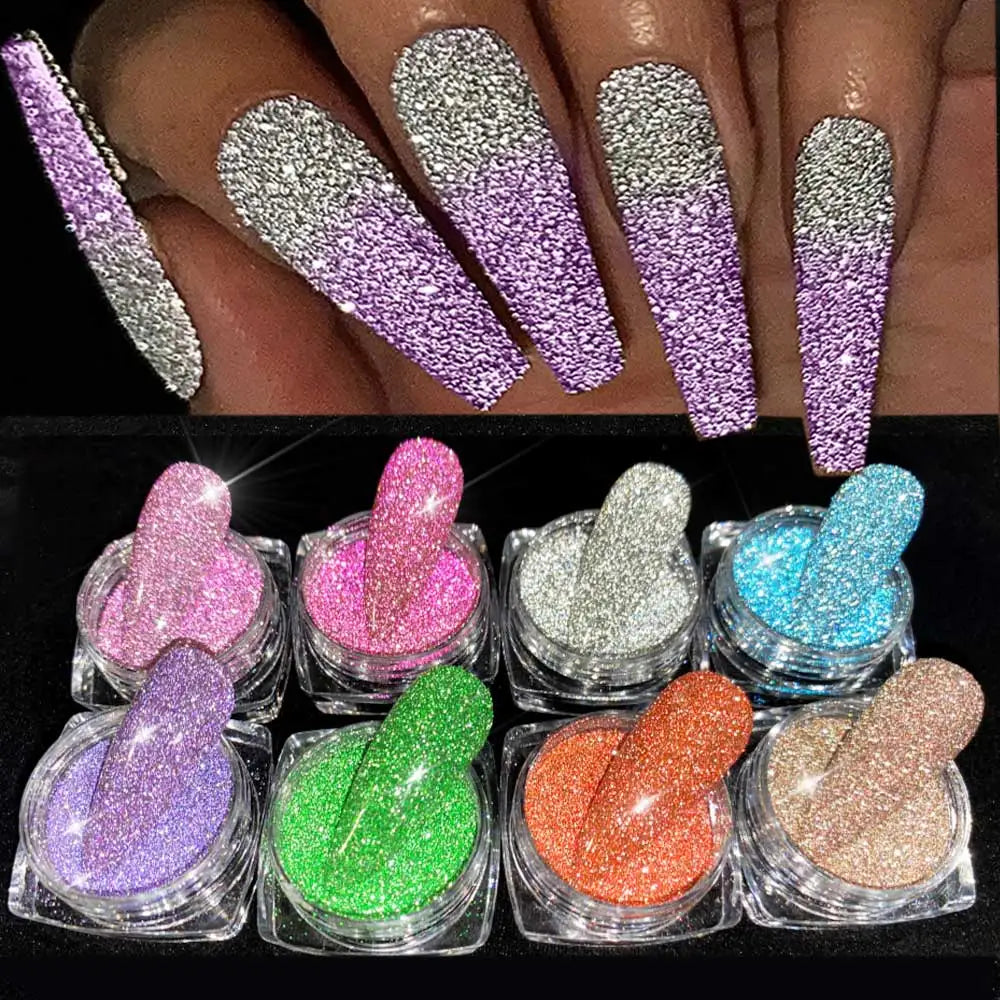 8jar/set Sparkling Reflective Diamond Glitter Nail Art Chrome Pigment Sparkly Flash Crystal Pigment Nails DIY Dust Nail Supplies