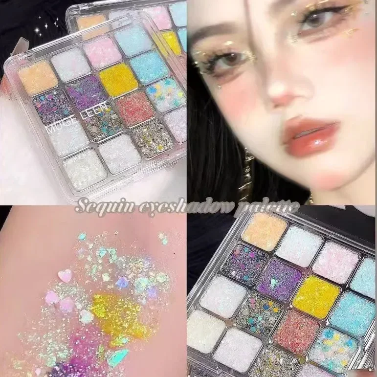 Yeknu 9/16-Color Glitter Eyeshadow Palette Butterfly Mermaid Decoration Diamond Lasting Special Shiny Eye Korean Makeup Cosmetics