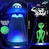 - Halloween UFO Yard Fun: there is a hook in the middle of the product; After the cow is inflated, attach it to the hook and enter the inflatable UFO kit; It is as if the UFO sucked you and the cow away together; 36 inch green alien inflatable toy, take you to experience the excitement of extraterrestrial life! Light up the lights at night to provide optimal appeal to neighbors and guests; Ideal for space themed Halloween parties and yard decorations