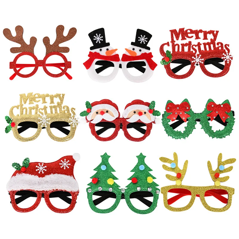 Yeknu 9Pcs Merry Christmas Glasses Frame Xmas Party Decoration Photo Booth Props Eyeglasses Navidad New Year Supplies Kids Gift