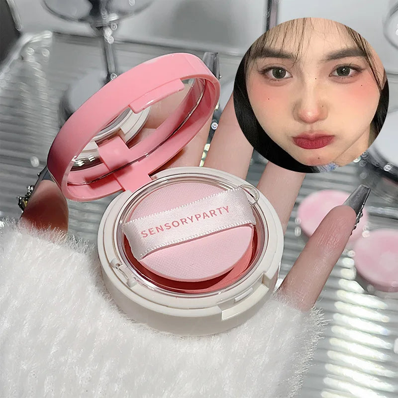 Yeknu Air Cushion Blusher Mud Matte Velvet Mist Smooth Cheek Tint Peach Pink Blush with Puff Rubor Korean Dupes Makeup Women Cosmetics