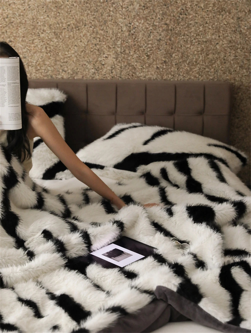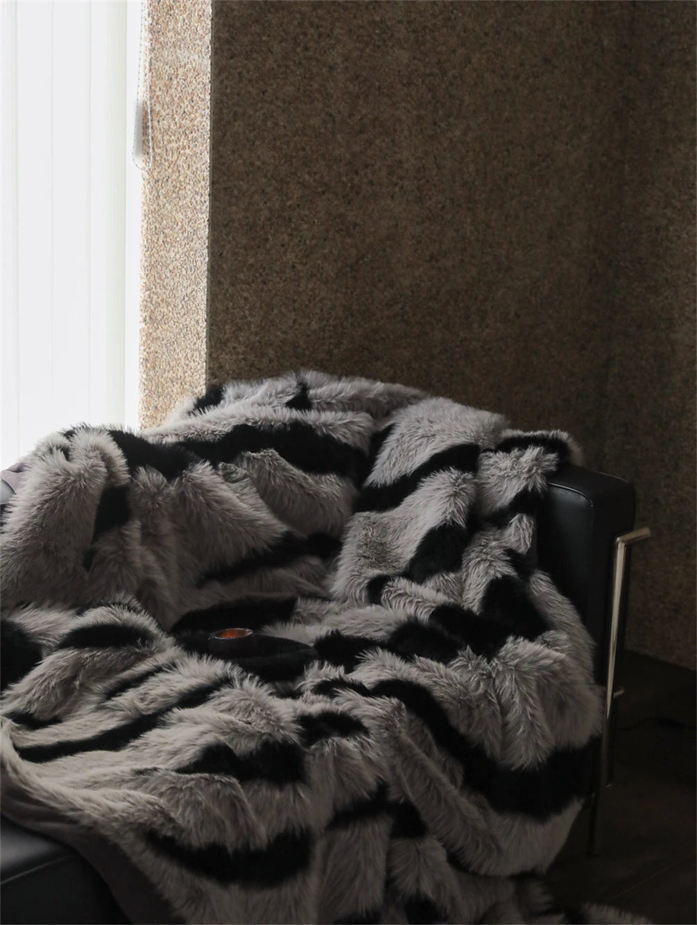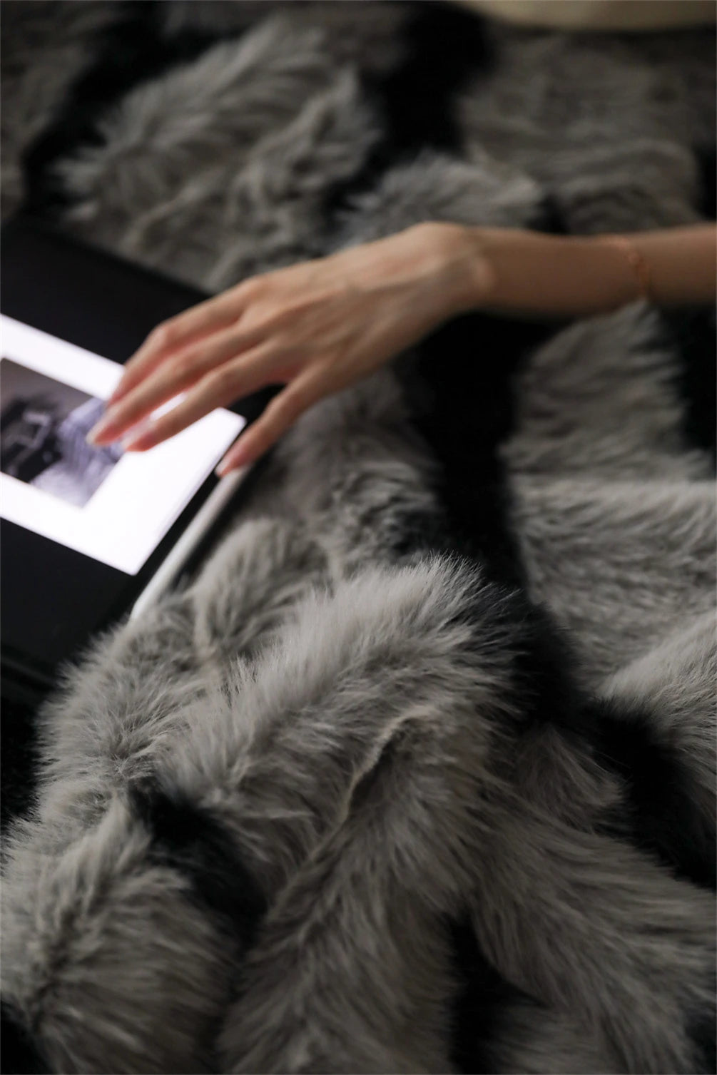 Yeknu American Style Light Luxury Faux Fox Fur Blanket Modern Simple Home Winter Warm Blanket Fashionable Sofa Lunch Break Blanket