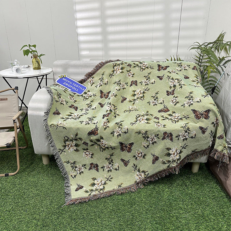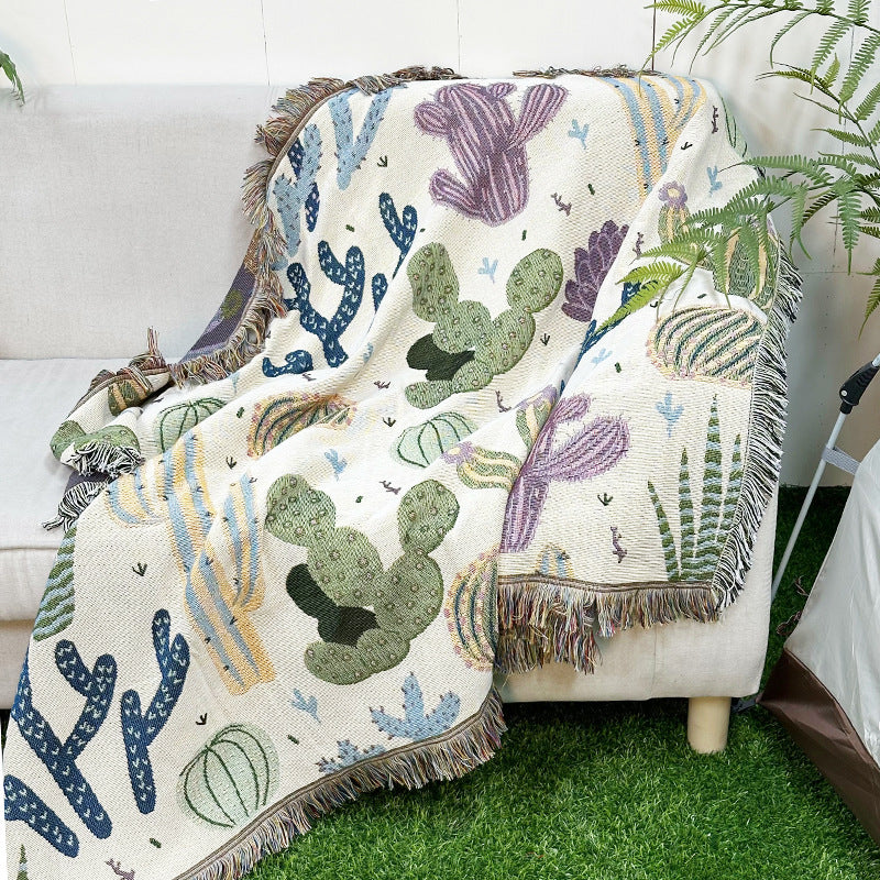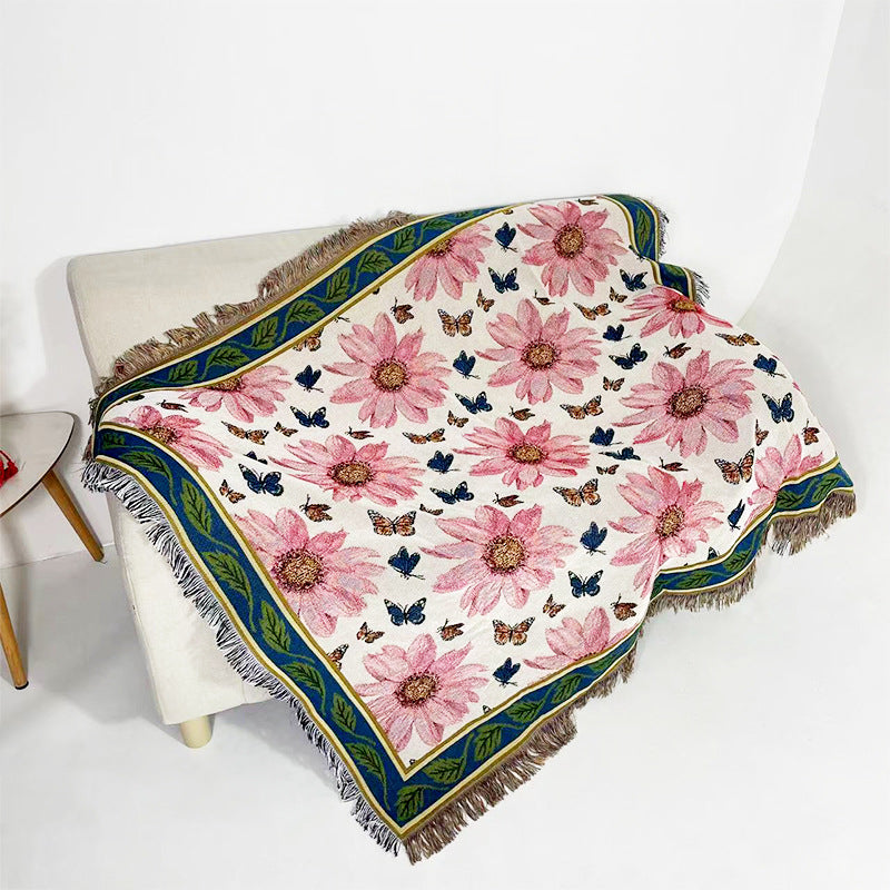 apartment decor inspiration Household Flower Sofa Blanket Polyester Cotton 130 * 160cm with Tassels Four Seasons Universal Recliner Blanket Coffee Table Tablecloth