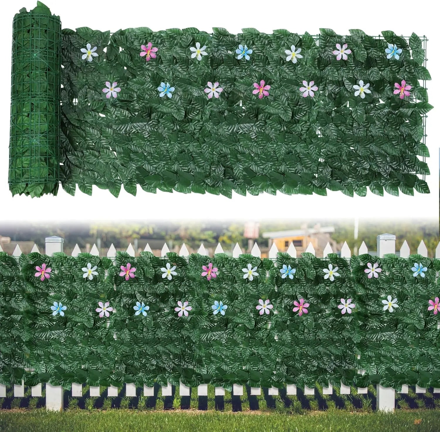 Yeknu Artificial Ivy Flower Privacy Fence Screen, Green Background Wall Indoor and Outdoor Garden Fence Decoration