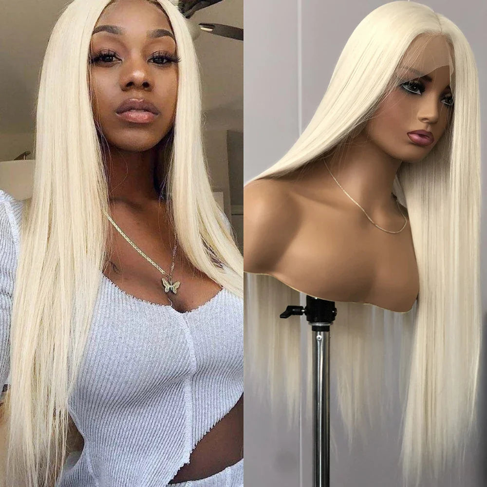 Yeknu Ash Blonde Lace Front Wig Synthetic Wigs for Women Long Silky Straight Light Blond Frontal Glueless Natural Hairline Daily Party