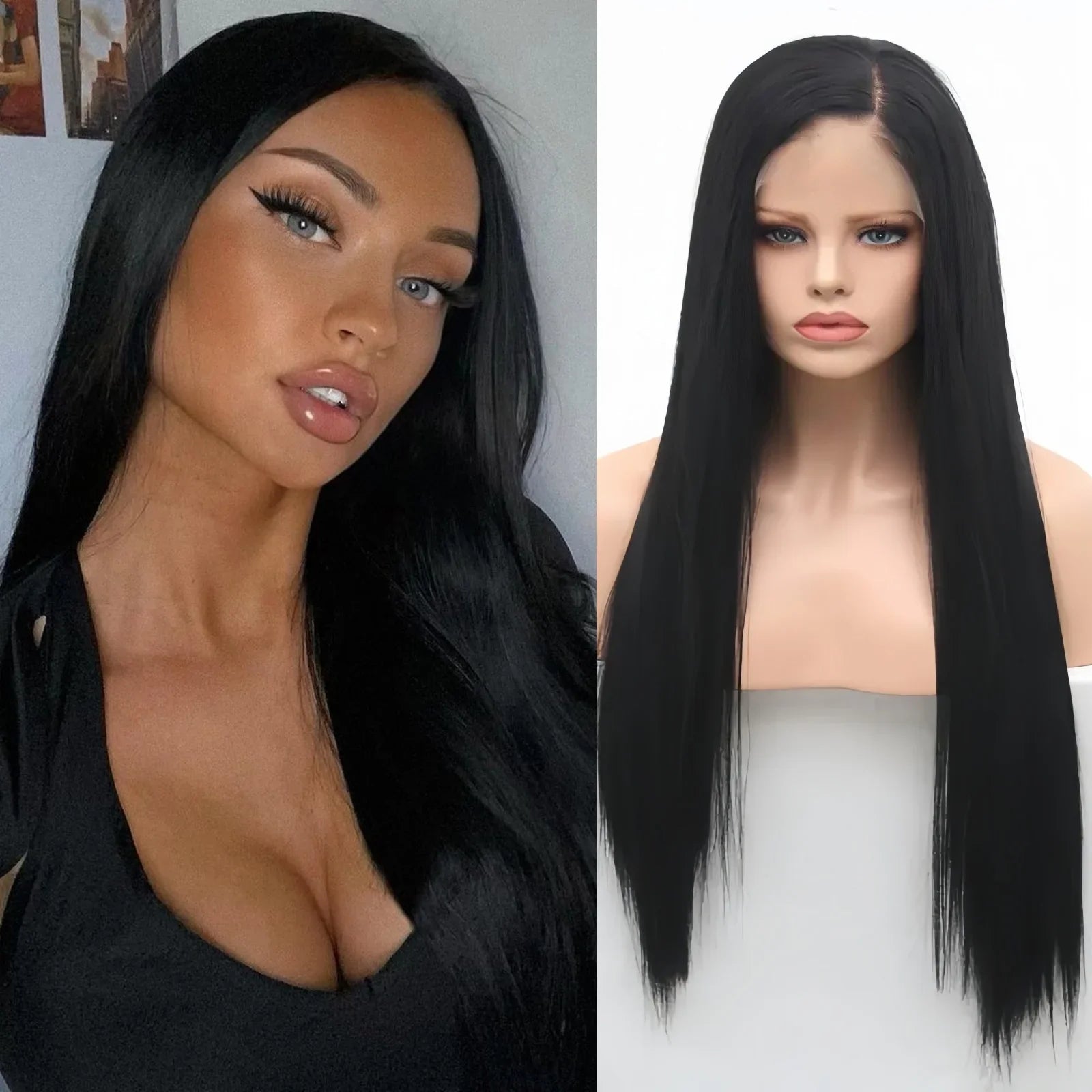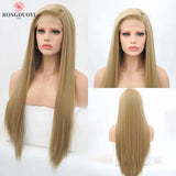 Yeknu Ash Blonde Wig Long Straight Synthetic Lace Front Wig Jet Black Platinum Blonde Hair Colored Lace Frontal Wigs for Women Party