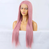 Yeknu Ash Pink Long Silky Straight Synthetic Lace Front Wig Natural Dark Colored 13X4 Frontal Wigs for Women Party Cosplay Free Part