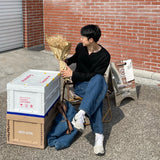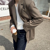 Yeknu Autumn 100% Cotton V-neck Long Sleeve T-shirts Men Ins Korean Casual Solid Color Tops High-end Design Loose Bottoming Shirt Men
