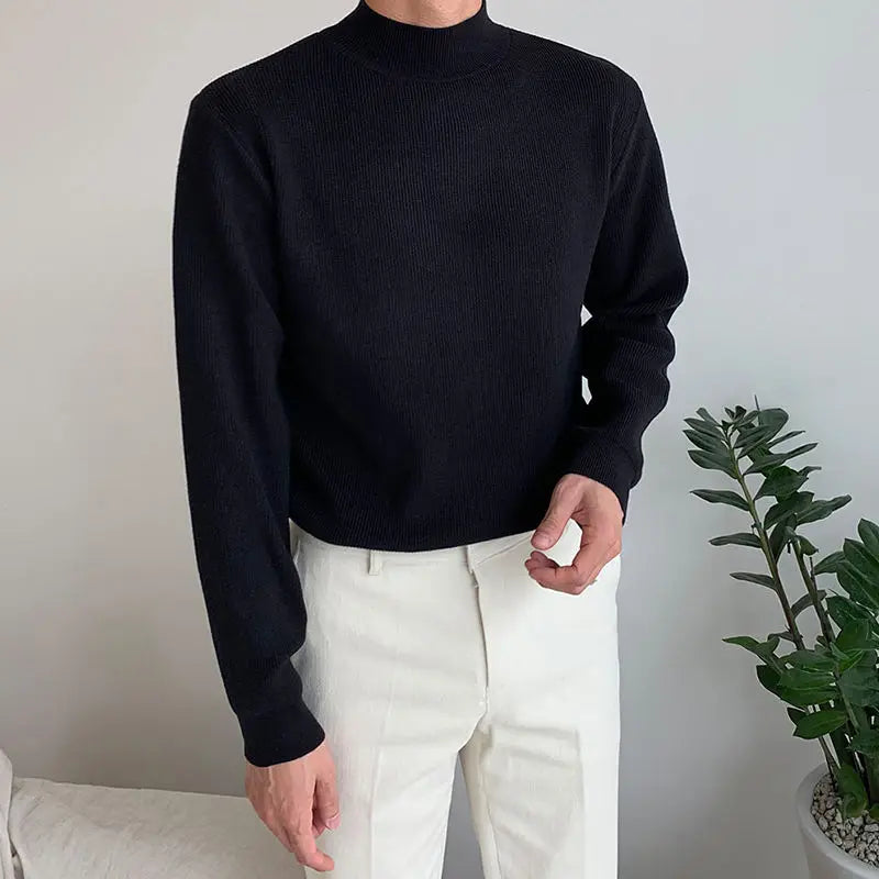 Yeknu Autumn and Winter New Men Clothes Half Turtleneck Knitted Sweater Men Loose Korean Fashion Solid Color Bottoming Sweaters