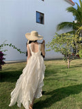 Yeknu Beach Holiday Elegant Party Long Dresses for Women 2024 Summer New Korean Fashion Sundress Embroidery Sleeveless Female Clothing