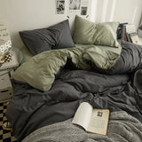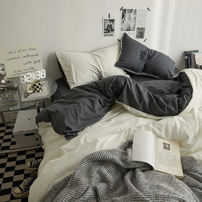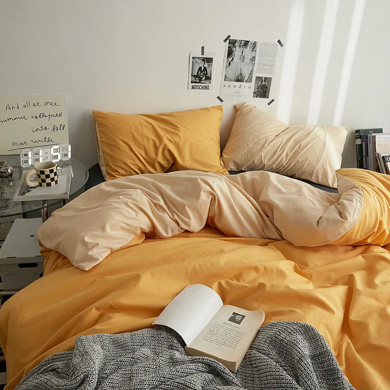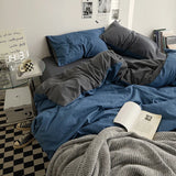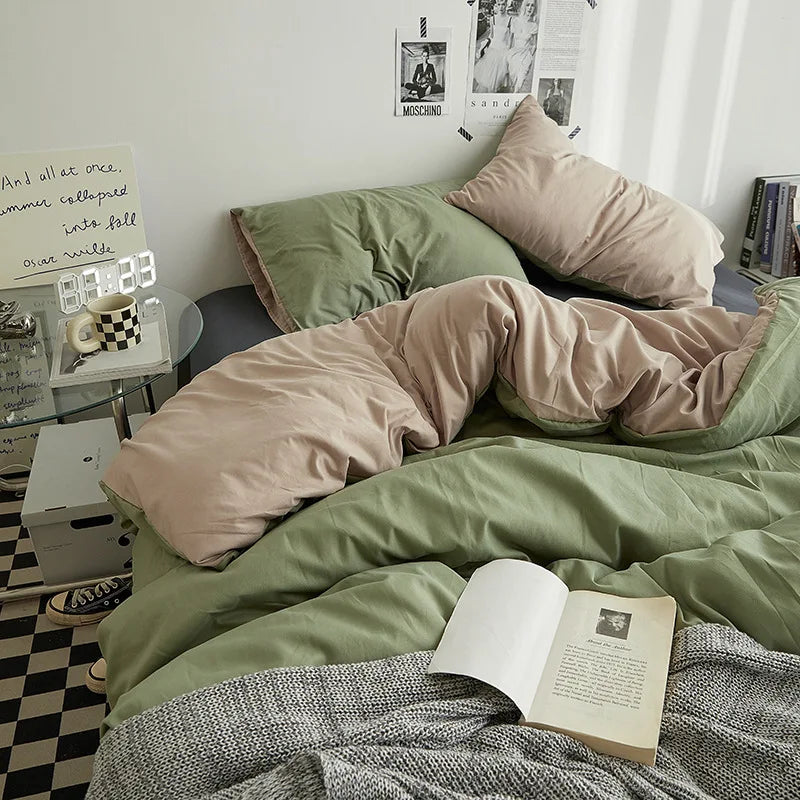 Yeknu Bed Sheet Set Ins Style Double Color Washed Cotton Bed Sheet Quilt Cover Sheet 3-piece Set Comforter Set Queen King Size