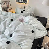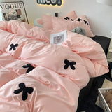 Yeknu Bedding Set Ins Style Minimalist Blue Washing Cotton black bow towel Embroidered Four PIECE Set, 1.5 Bed Sheets