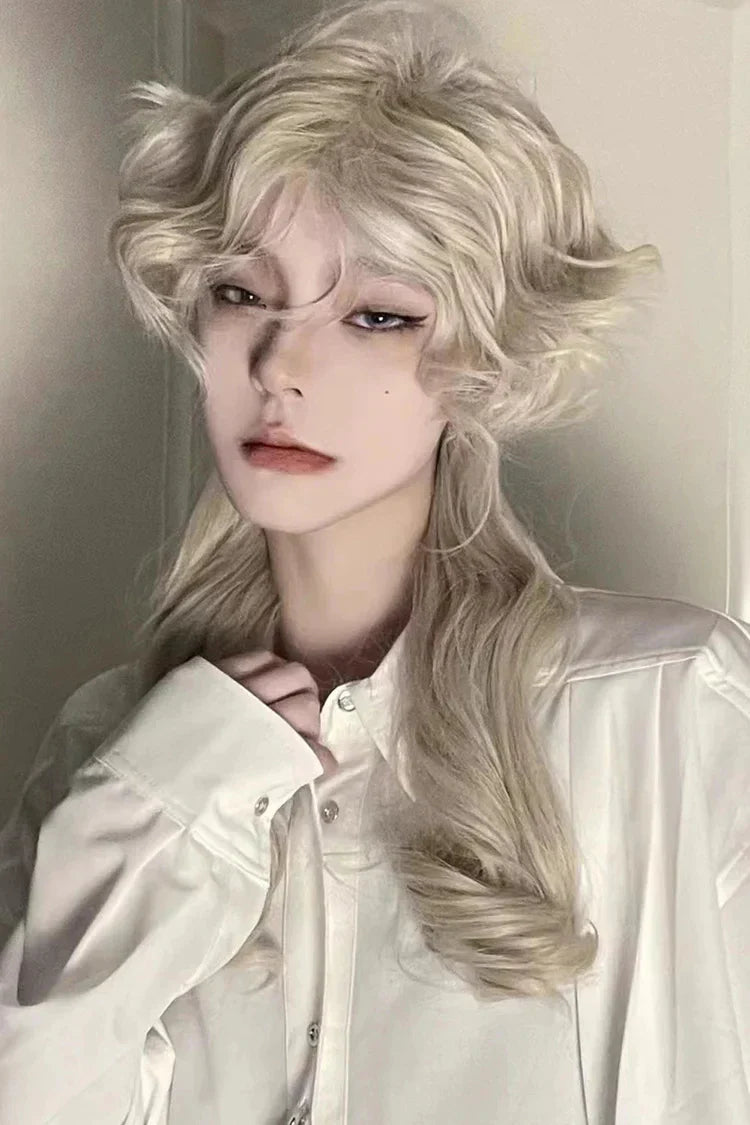 Yeknu Beige Medium Long Curly Hair Retro Ouji Wig with Bangs 18 Inch 13x4 HD Wigs for Women Lolita for Cosplay and Party Use