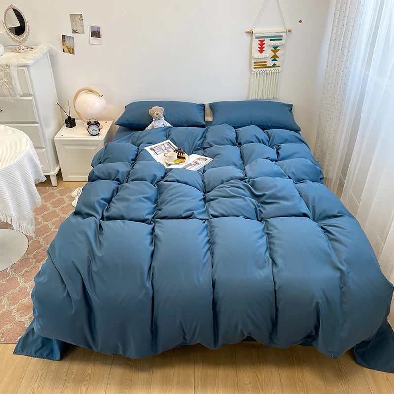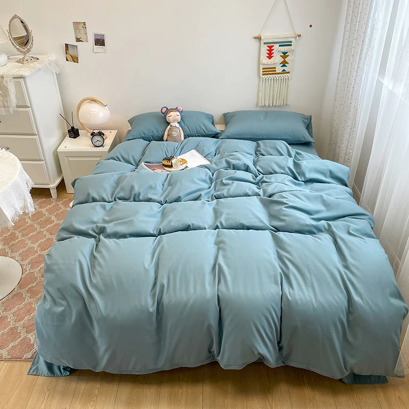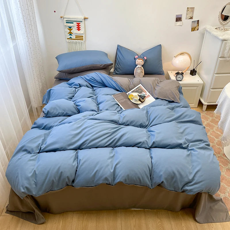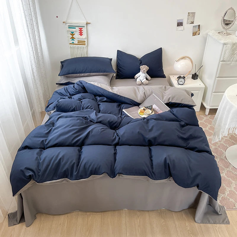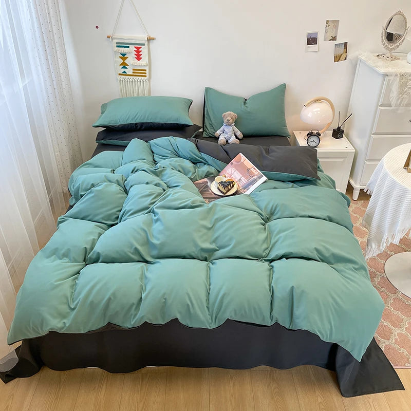 Yeknu Black Bedding Set Soft Bed Linen Set Washed Cotton Duvet Cover Pillowcase and Bedsheet постельное бельё набор Home Bedclothes