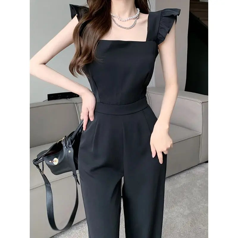 Yeknu Black Jumpsuit Suit Square Neck Flying Sleeve Wide Leg Casual Pants Korean Fashion Hot Girl Slim Jumpsuits Female Clothes