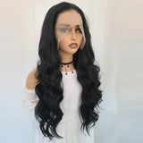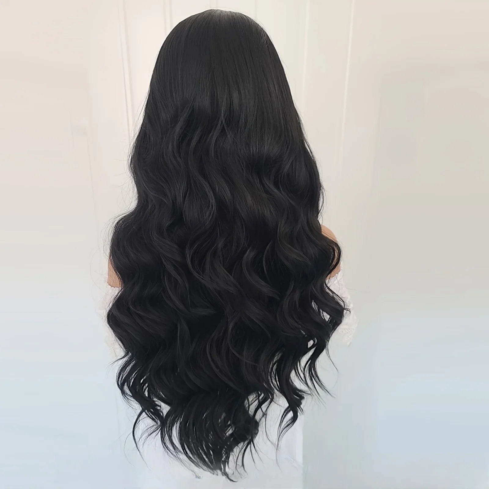 Yeknu Black Lace Front Wig Synthetic Hair Loose Body Wave Long Deep Curly Natural Wavy Colored 13X4 Lace Frontal Wigs for Women Party