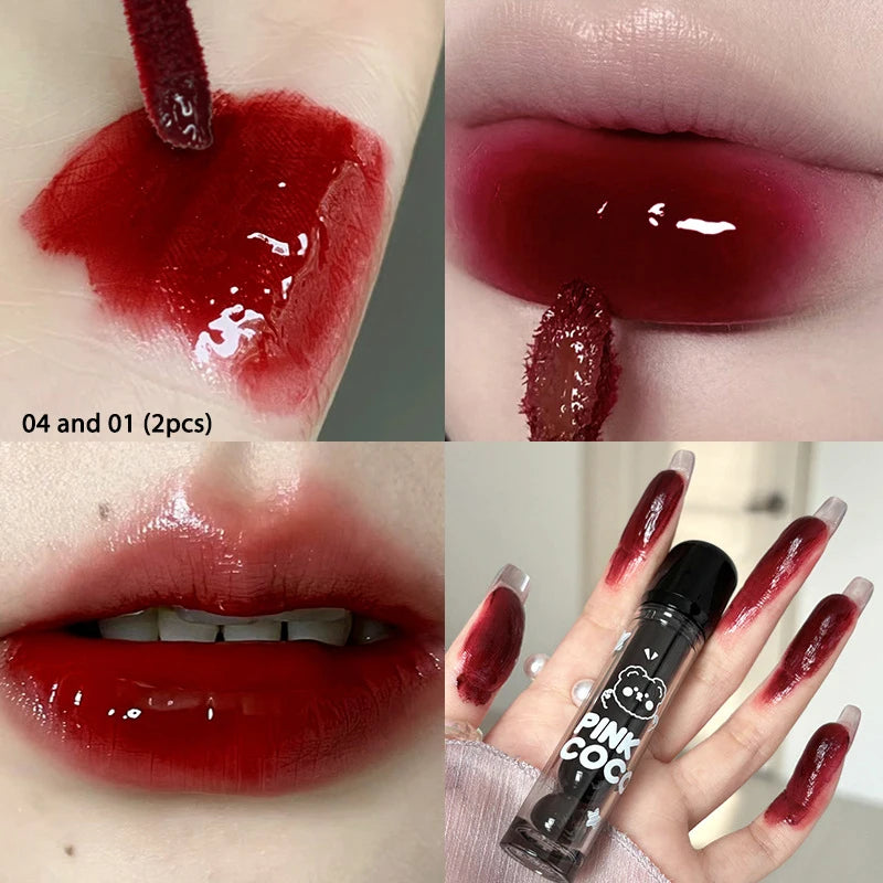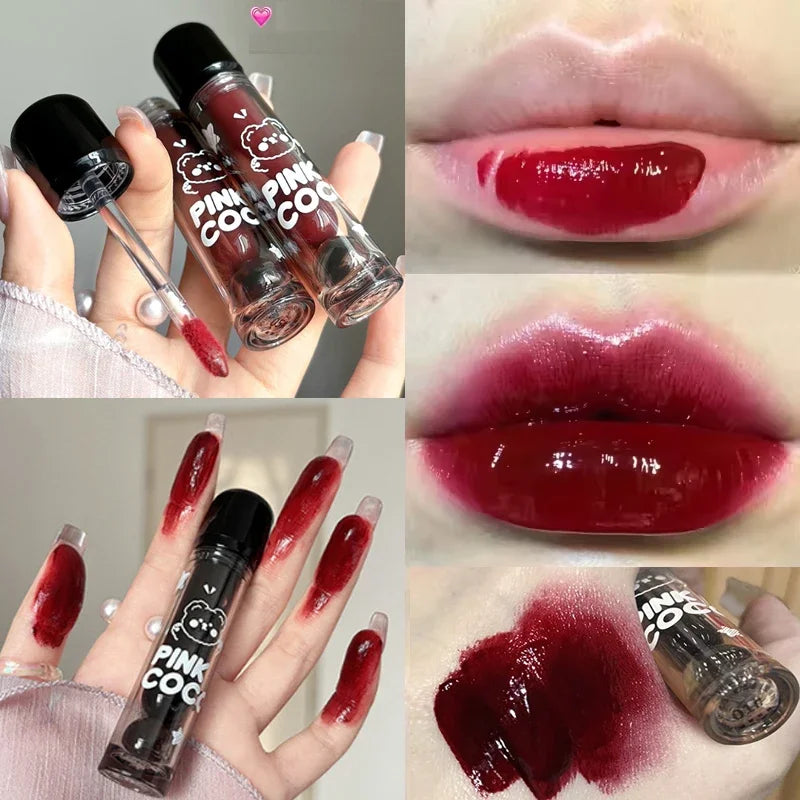 Yeknu Black Mirror Water Lipgloss Dark Red Moisturizing Lip Glaze Lasting Non-stick Cup Forming a Film That Is Not Easy to Fade Makeup