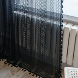 Yeknu Black Polyester Cotton Crochet Transparent Curtains American Rural Hollowed Out Living Room Balcony Bedroom Decorative Curtain