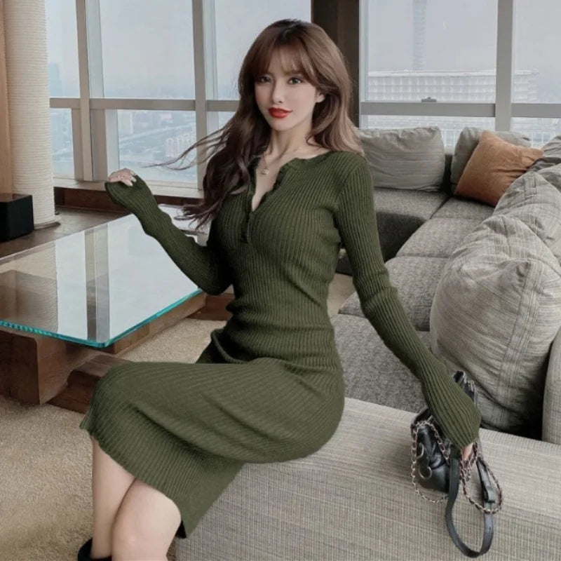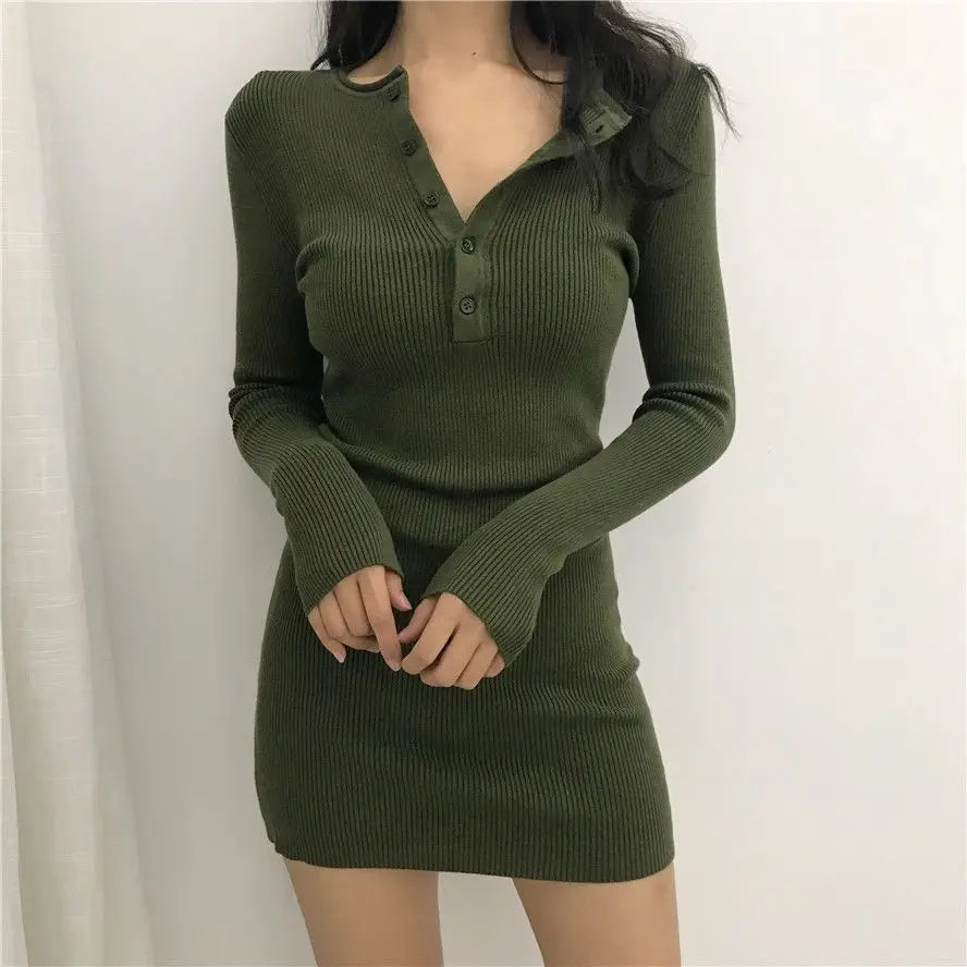 Yeknu Black Sexy Female Knit Dress Winter Autumn Wrap Midi Green Bodycon Fashion Sweater Dresses Woman Vintage Korean Mini Short