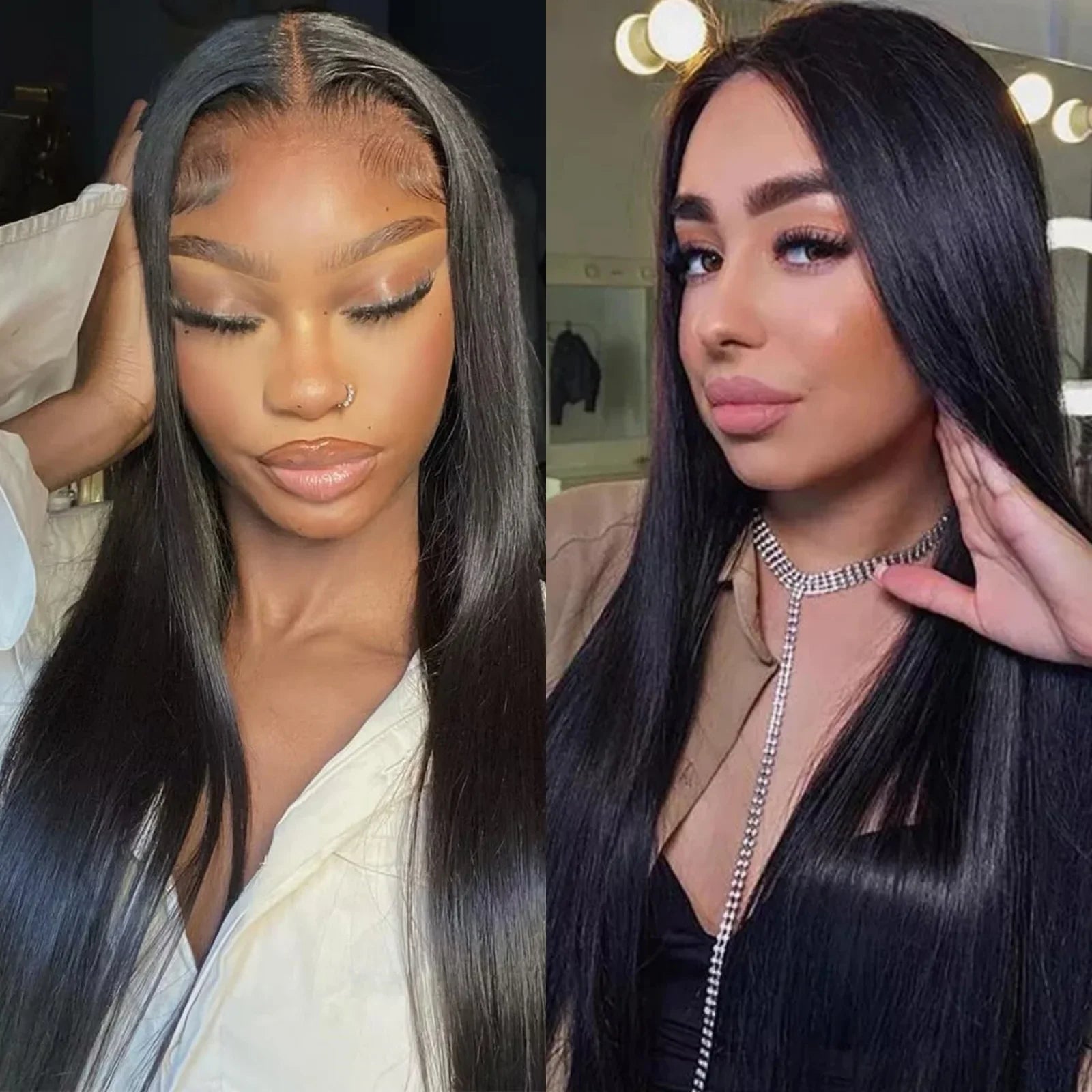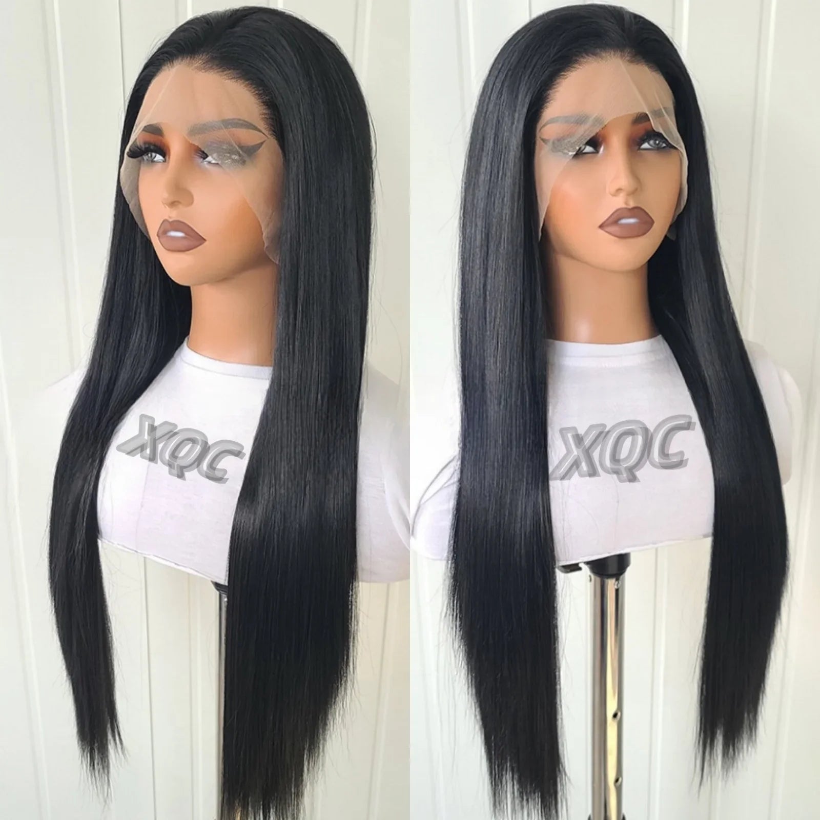 Yeknu Black Wig Straight Synthetic Lace Front Wig Glueless Wig Ready to Wear Long Black Wig Synthetic Hair Lace Frontal Wigs for Women