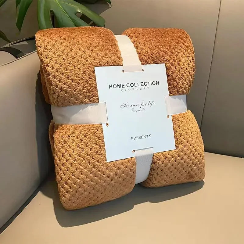 Yeknu Blankets for Beds Solid Yellow Color Soft Warm 300GSM Plaid Square Flannel Blanket On the Bed Thickness Throw Blanket