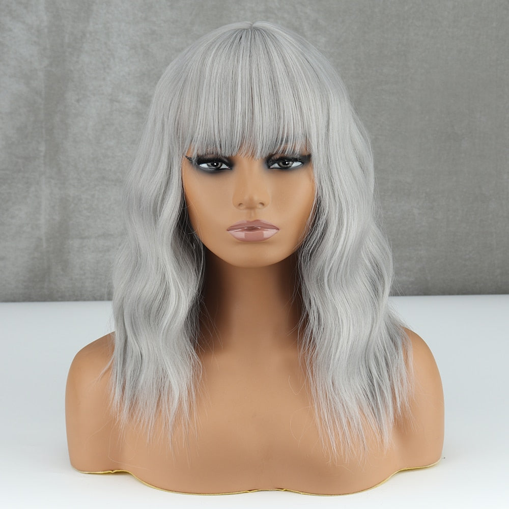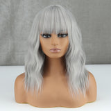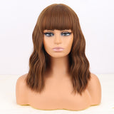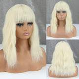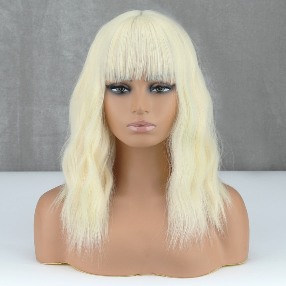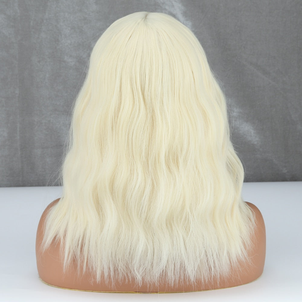Yeknu Blonde Golden Synthetic Bob Wigs For Women With Bangs Wave Heat Resistant Cosplay Lolita Natural Hair