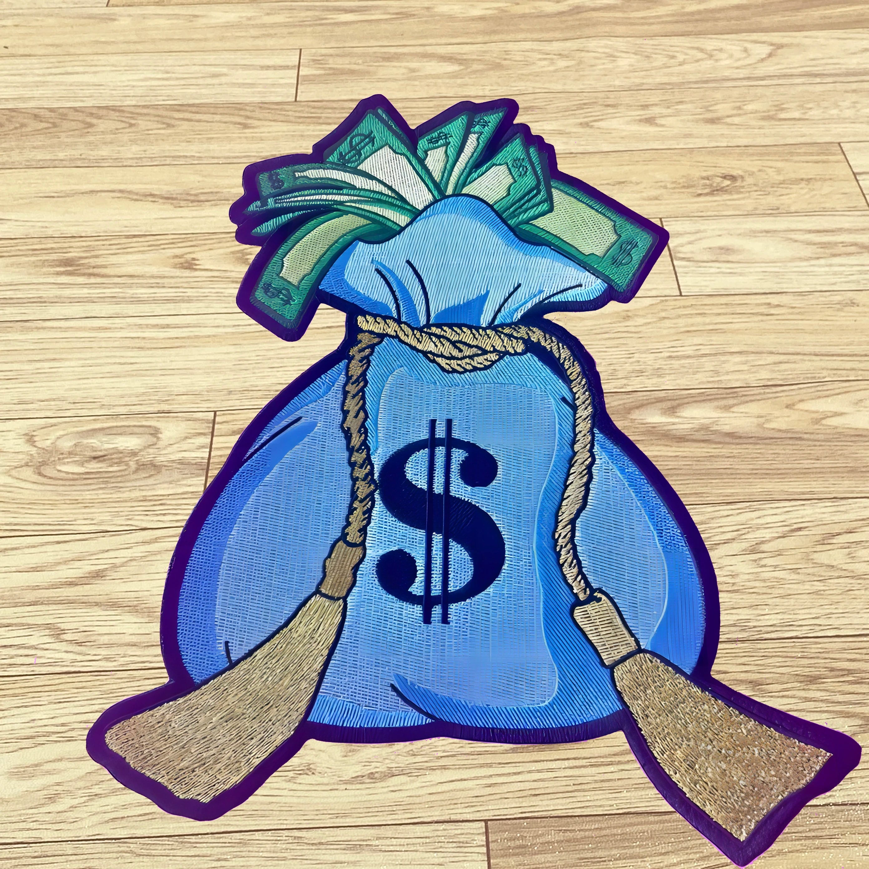 Yeknu Blue Money Bag Soft Carpet Flannel Carpet Digital Printing Technology Housewarming Gift Custom Non-slip Decorative Carpet
