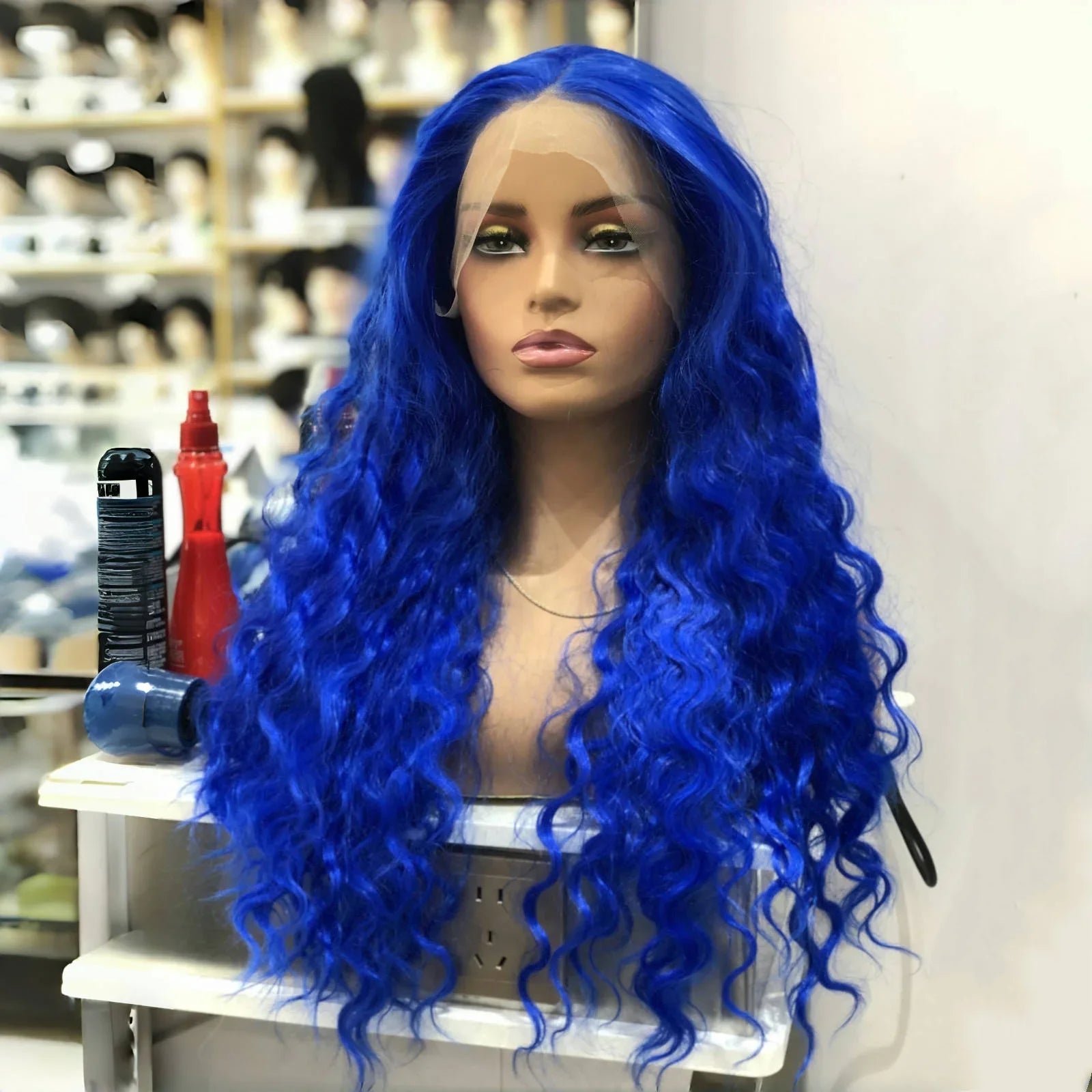 1.This Blue Lace Front Wig Curly Wig Synthetic Wig Middle Part with Natural Hairline, Looks More Realistic and Easy to Wear. It£ªs 150% Heavy Density Very Full.