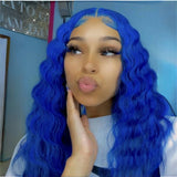 Yeknu Blue Wig Long Blue Curly Wig Synthetic Lace Front Wig Glueless Wigs Ready to Wear Water Wave Deep Curly Wigs for Women Party