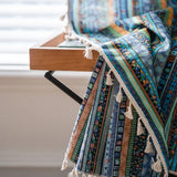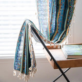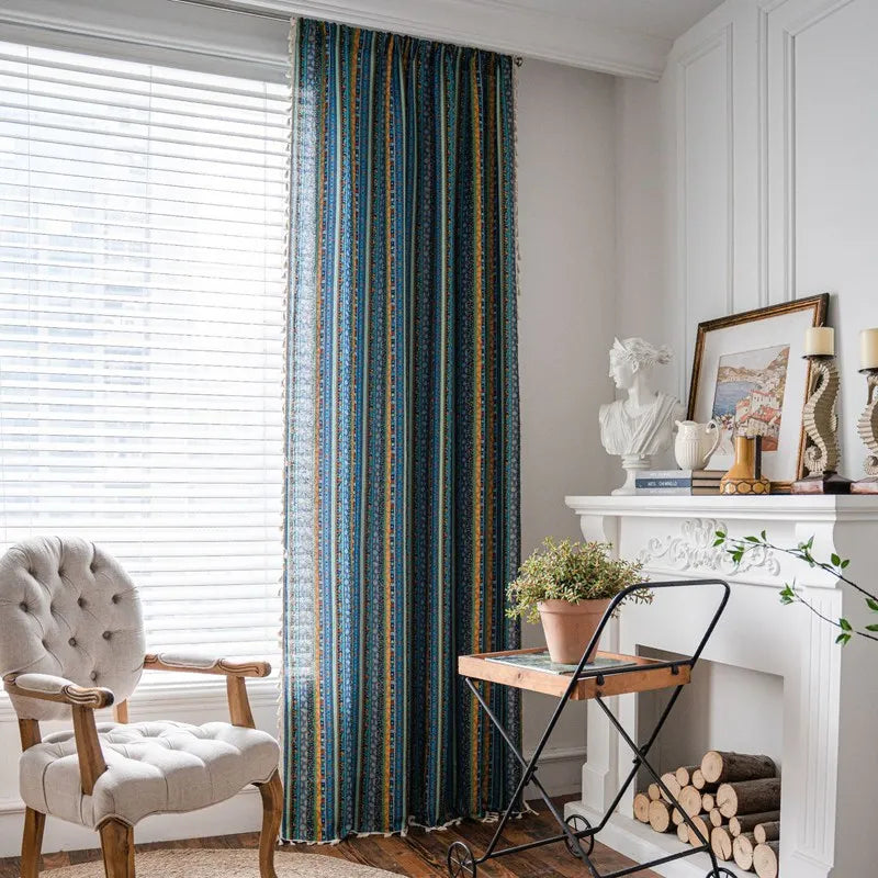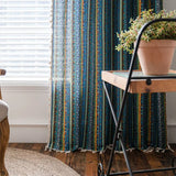 Yeknu Bohemian Style Striped Printed Window Curtain Cotton Linen Fabric Kitchen Valance Living Room Bedroom Decorative Tassel Curtain