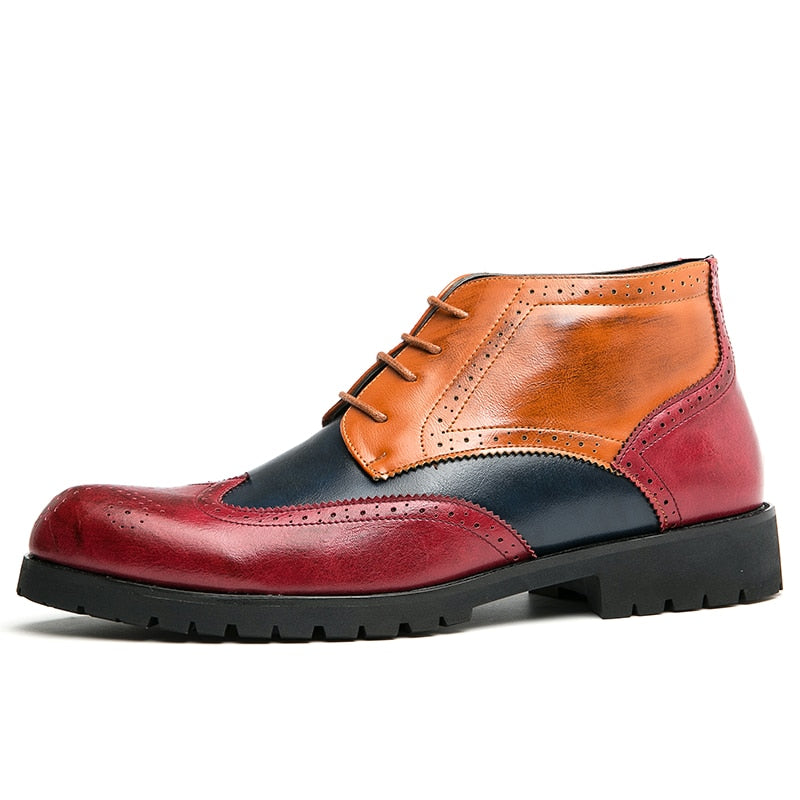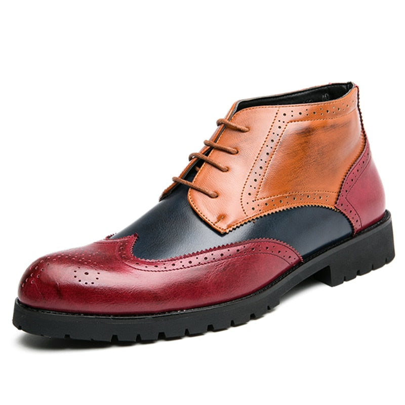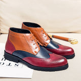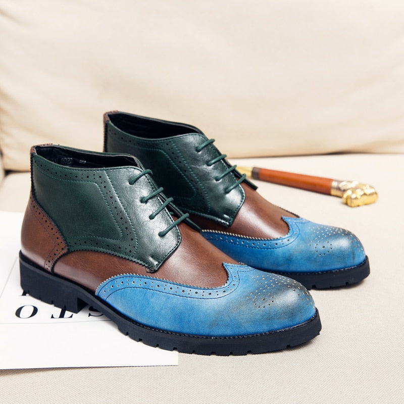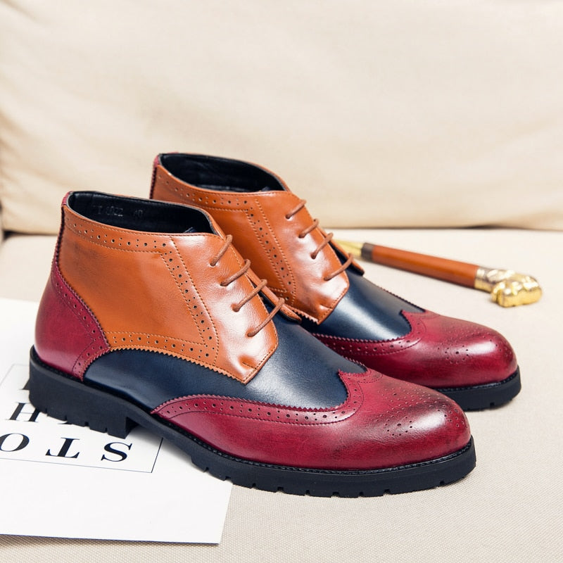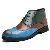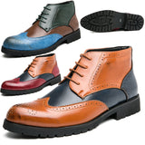 Yeknu Brand Men Leather Formal Lace Up Dress Shoes Oxfords Retro High Top Elegant Work Footwear Dress Casual Shoes 8002-1