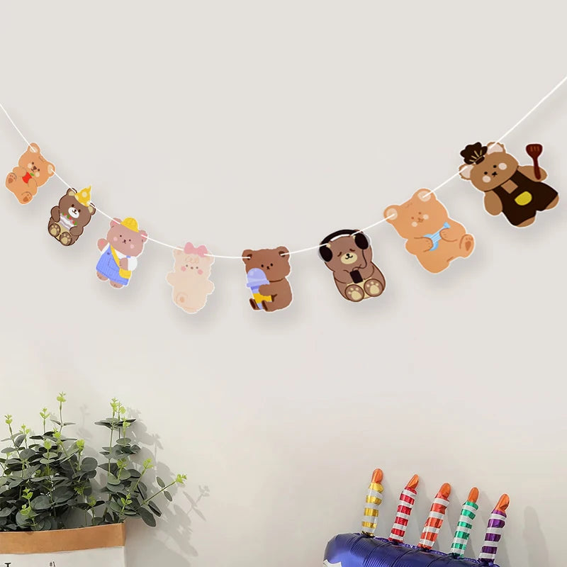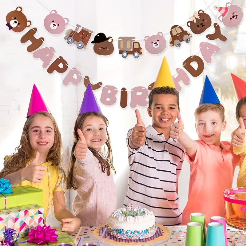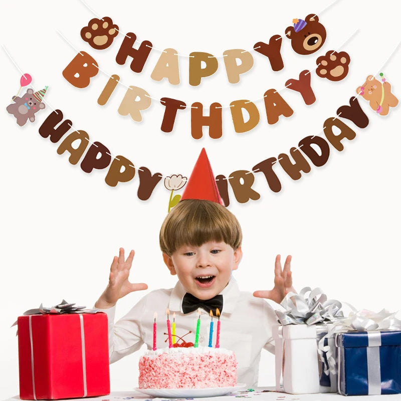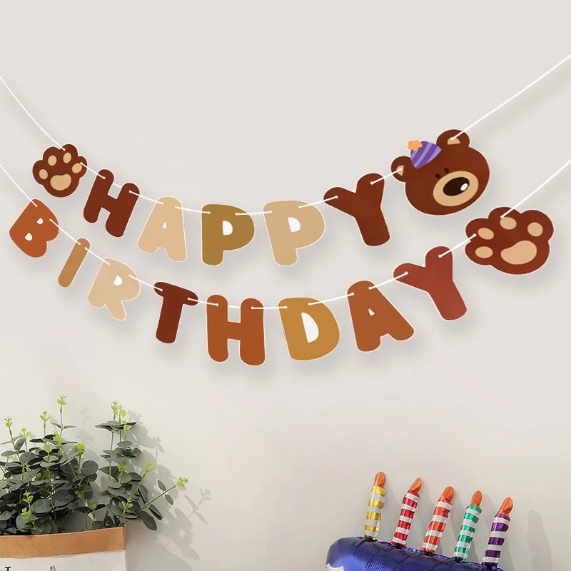 Yeknu Brown Teddy Bear Happy Birthday Letter Banner Garland For Kids Boy Girl Birthday Party Decoration Supplies Hanging Flags