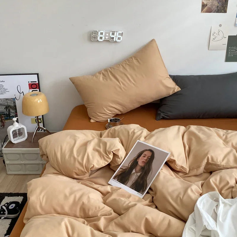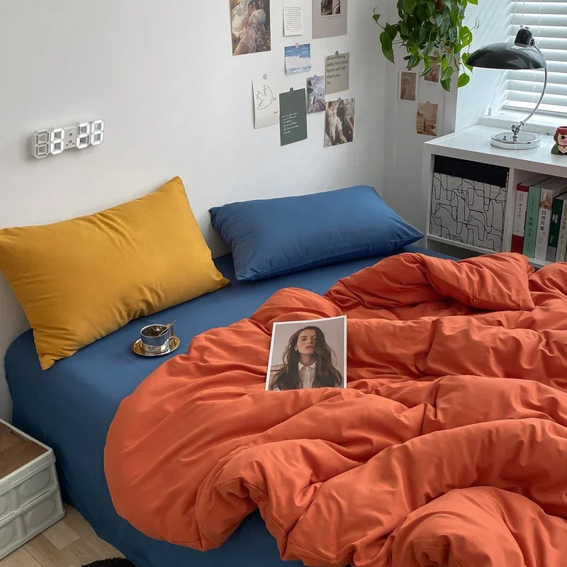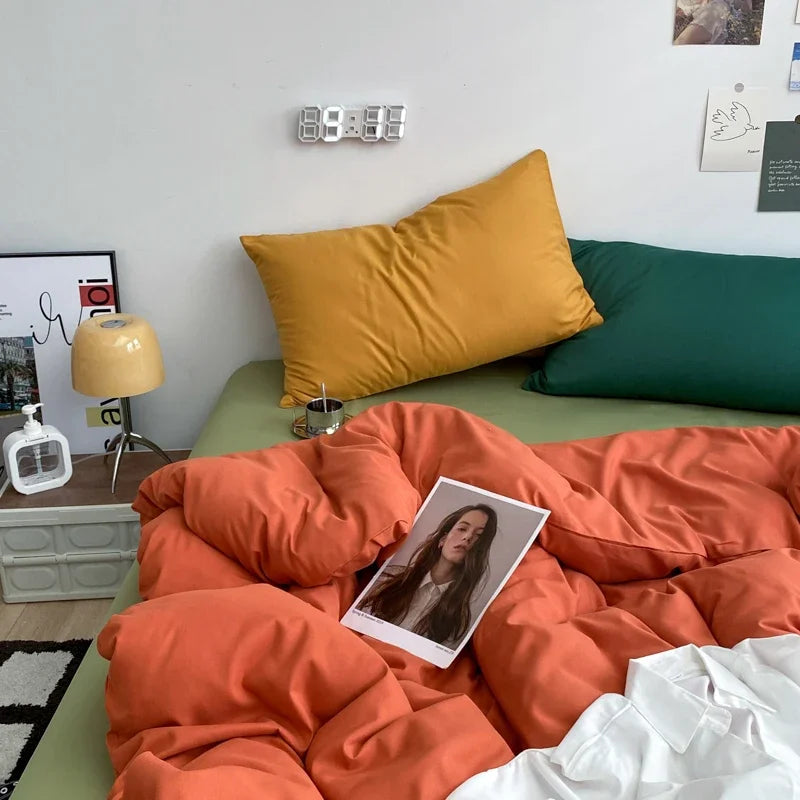 Yeknu Burnt Orange Duvet Cover Queen Soft Mix Colors Comforter Covers 4 Pieces, INS Style Skin-friendly Solid Bedding Bed Sheet Set