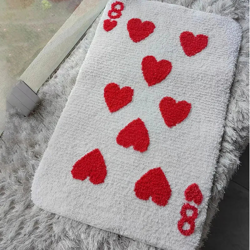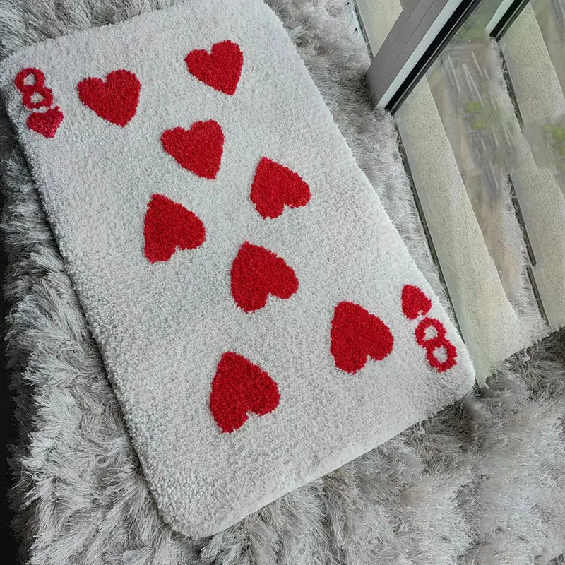 Yeknu Card Love No. 8 Tufted Rug Red And White Rectangular Living Room Bedroom Decorative Carpet Bathroom Mat