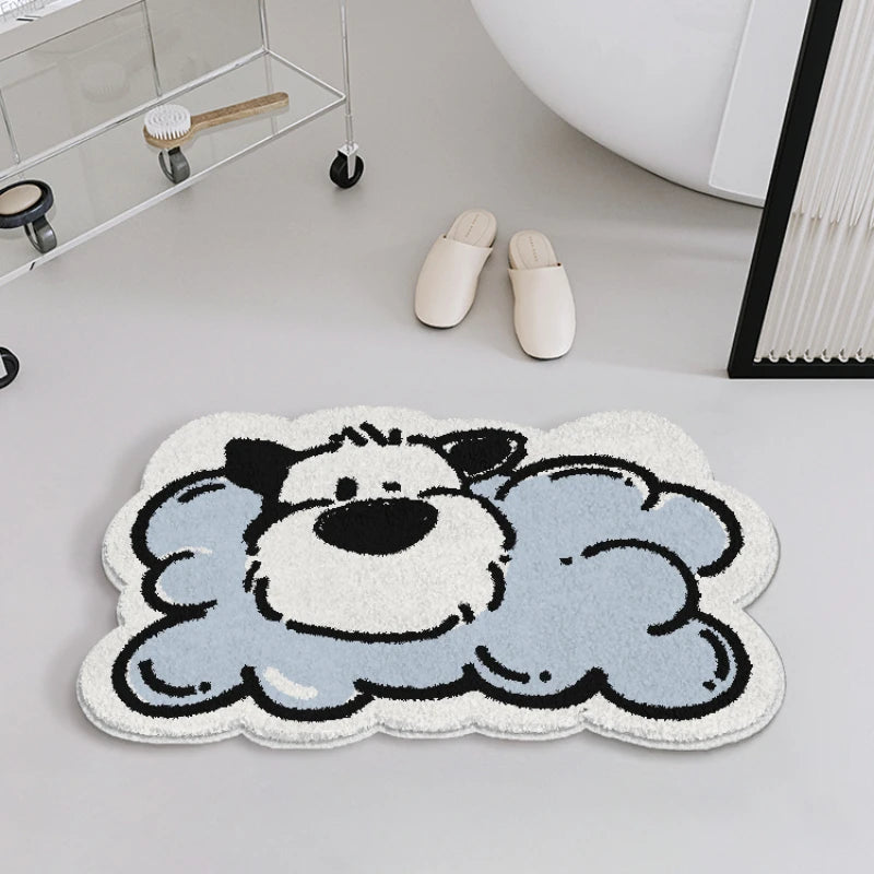 Yeknu Cartoon Puppy Living Room Sofa Carpets Cute Soft Girly Children's Bedroom Bedside Carpet Blue Plush Cloakroom Coffee Table Rugs