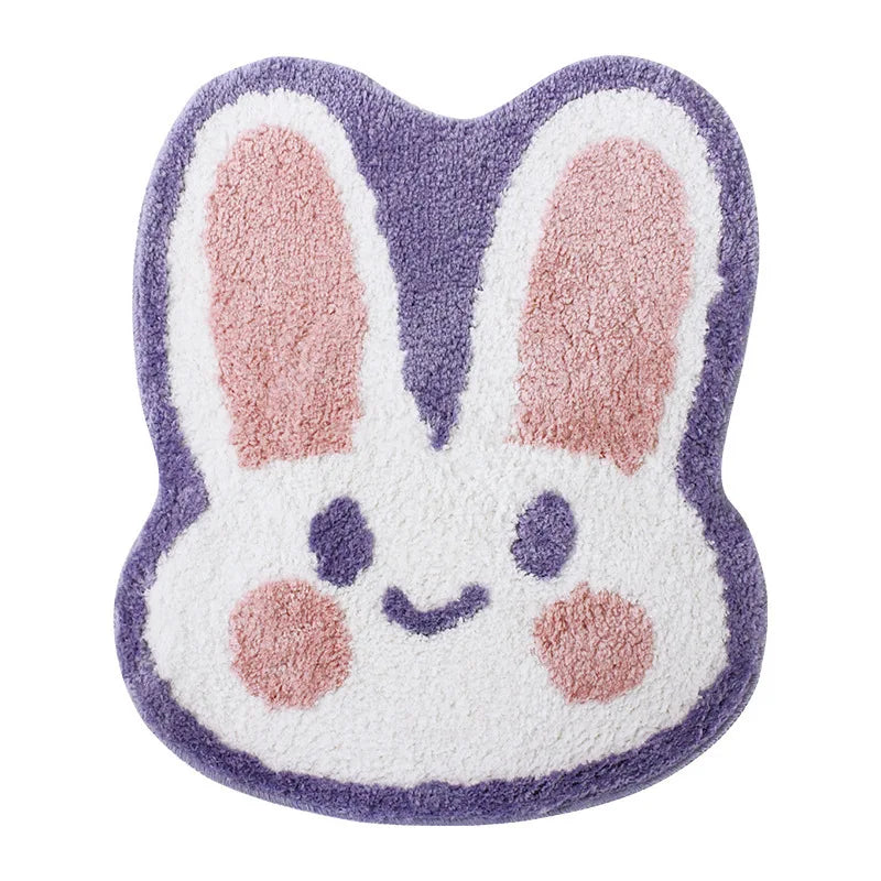 Yeknu Cartoon Rabbit Ins Wind Flocking Doorway Carpet Irregular Non-slip Absorbent Dirt Resistant Foot Mat Bedroom Bedside Mat