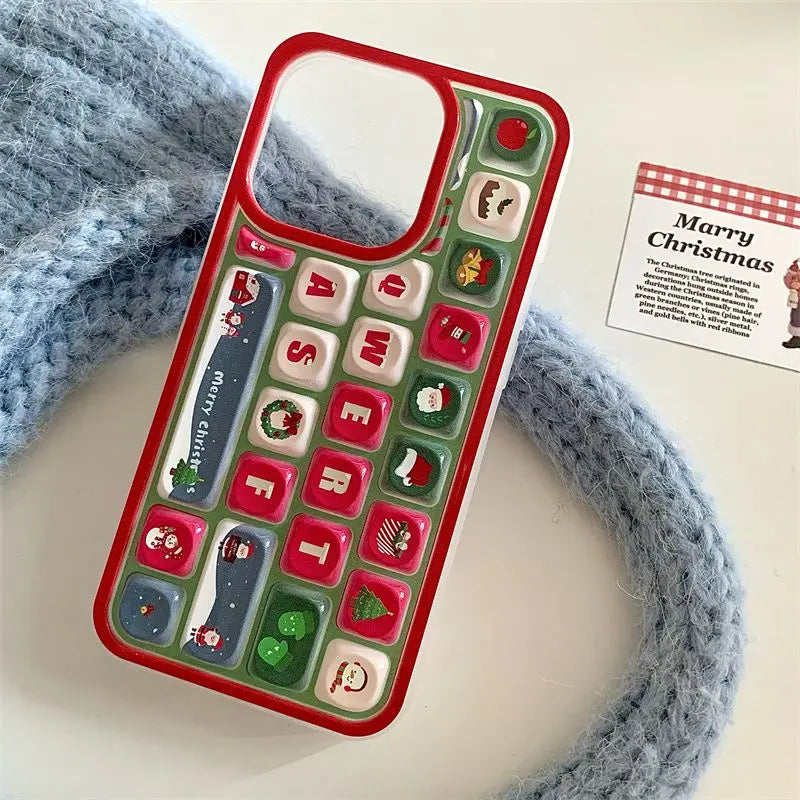 Yeknu Cartoon Santa Claus Bell Christmas Tree Case Compatible for IPhone 16 13 11 15 12 14 Pro Max 16 12 15 13 Pro 3D Keyboard Cover