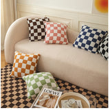 Yeknu Checkerboard Plush Cushion Cover Knitted Car Sofa Throw Pillow Cover Caese Short Fleece Pillowcase Cushion for Sofa Bed Decor
